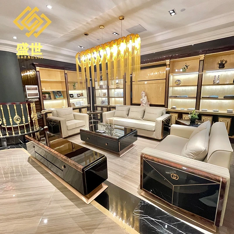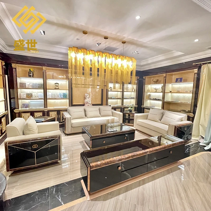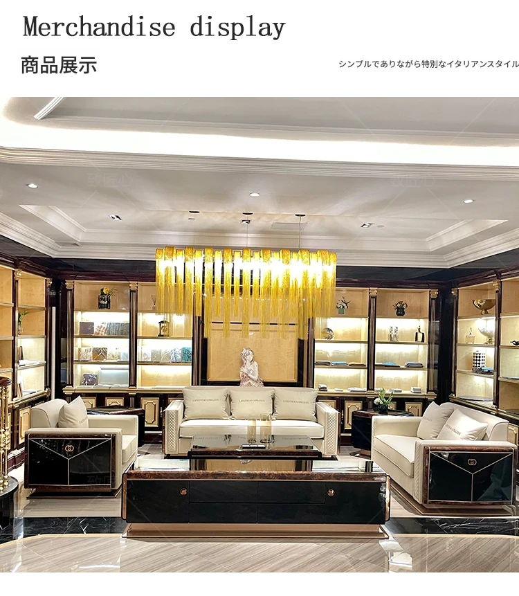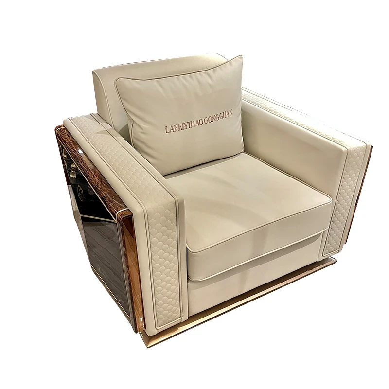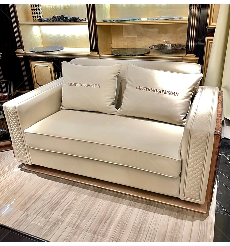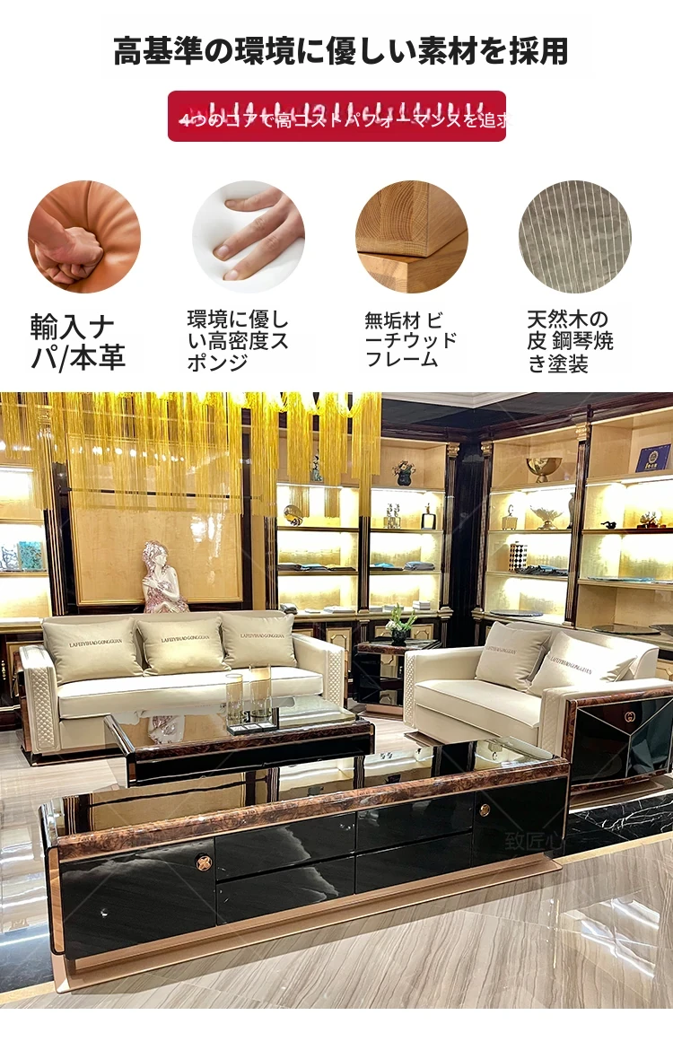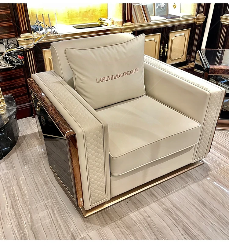イタリアンラグジュアリー後現代軽奢真皮ソファー 碧桂園別荘リビング用123コンビネーション高級香港スタイル家具