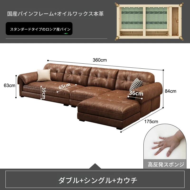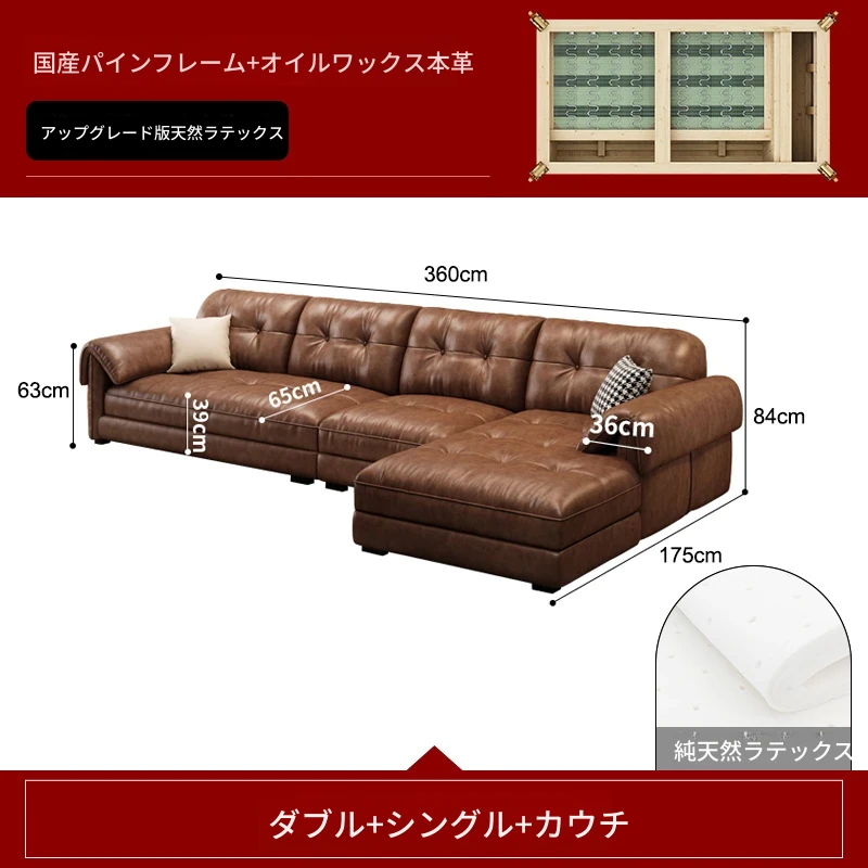 360cmダブルソファ+シングルソファ+カウチ【ラテックスタイプ】