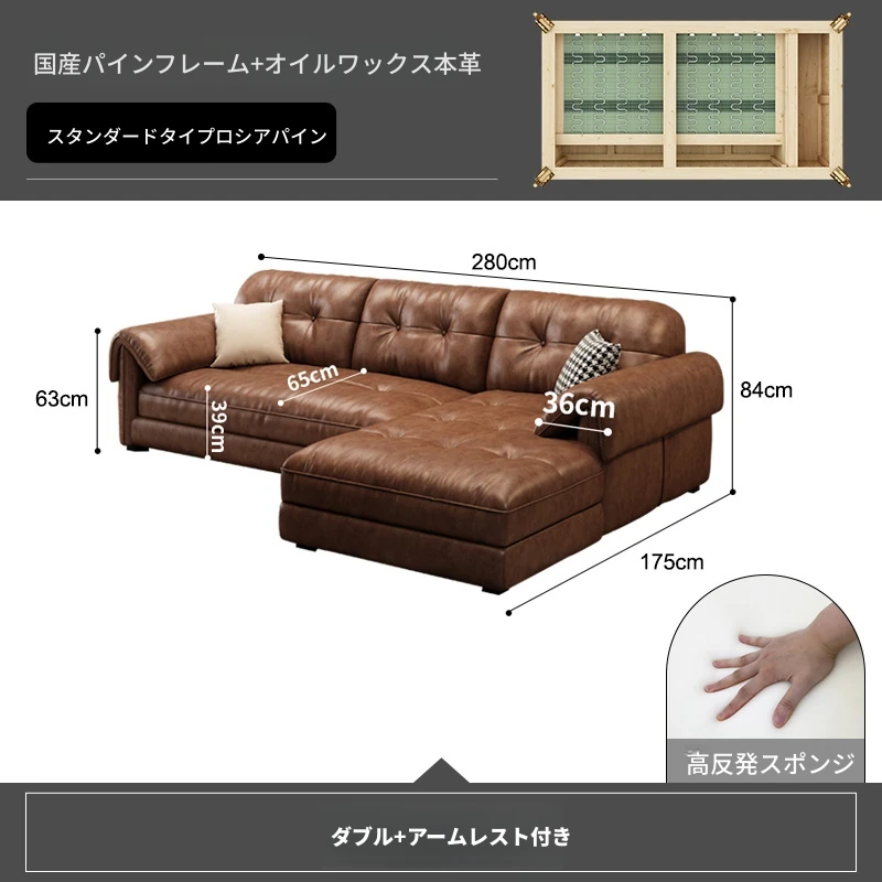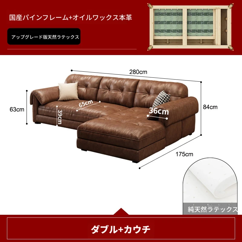 280cmダブルソファ+カウチ【ラテックスタイプ】