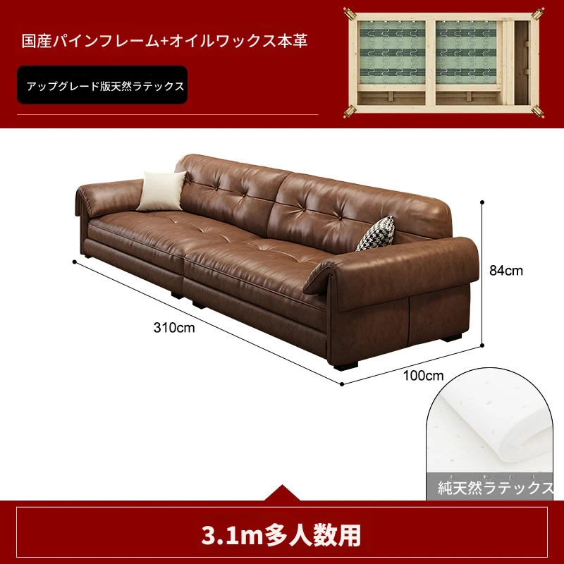 イタリアンスタイルの極簡真皮ミルクソファ|直列3人掛けXS636ゴムタイプの貴妃ソファ|レトロなリビングにぴったり!上質な素材で贅沢なひとときを。