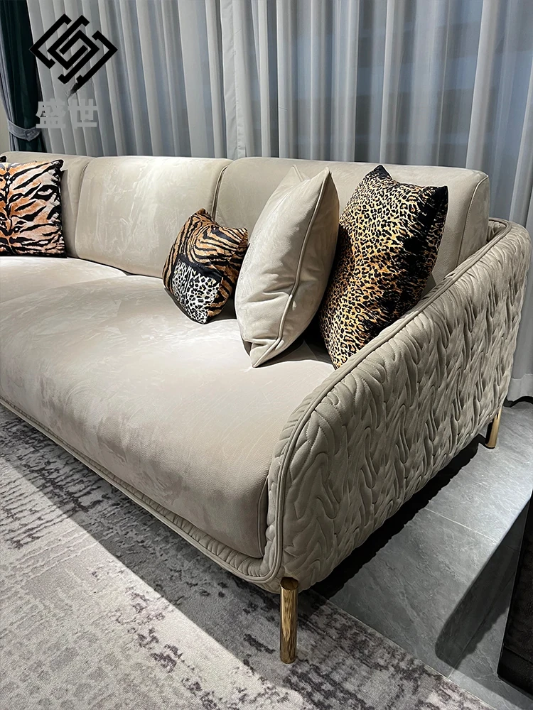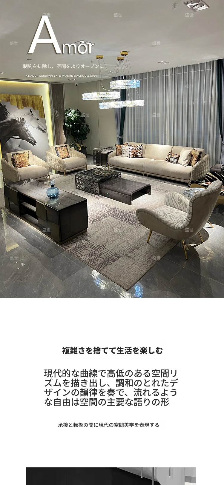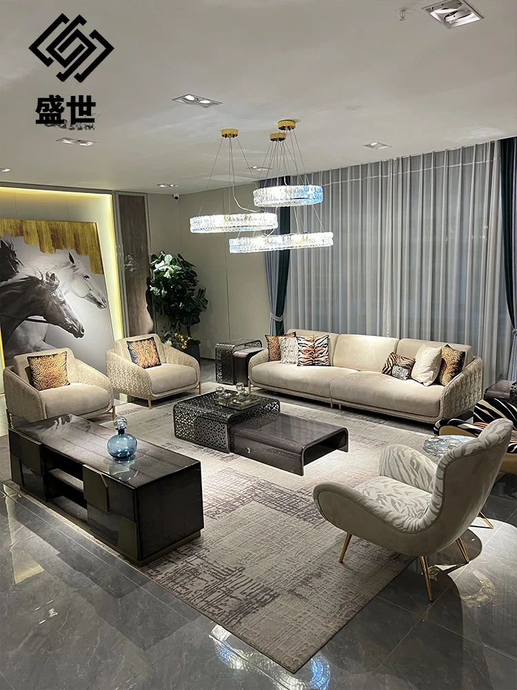 イタリアンロバート現代軽奢ソファセット - ヴィラのリビングにぴったり!高級感あふれるシンプルデザイン、マット仕上げの牛革使用で大空間にも最適な家具。あなたの理想の空間を実現します!