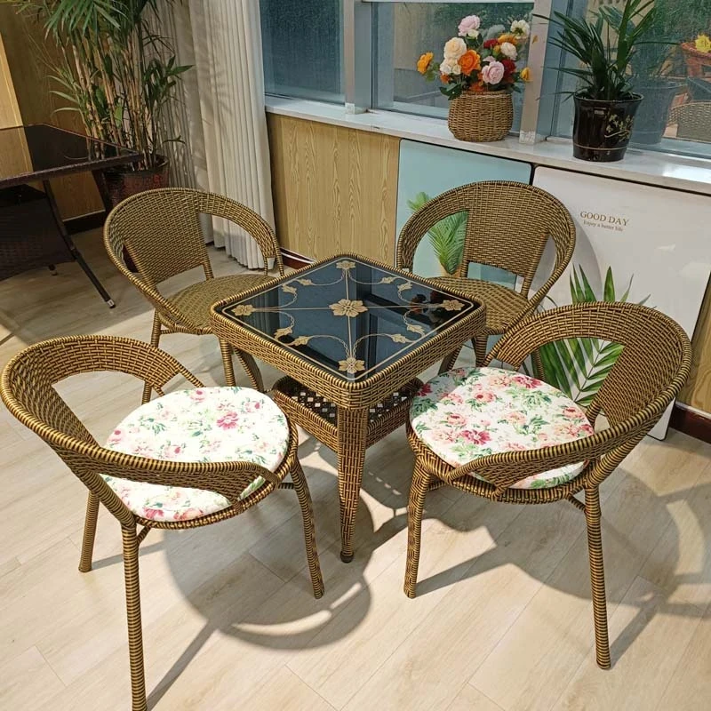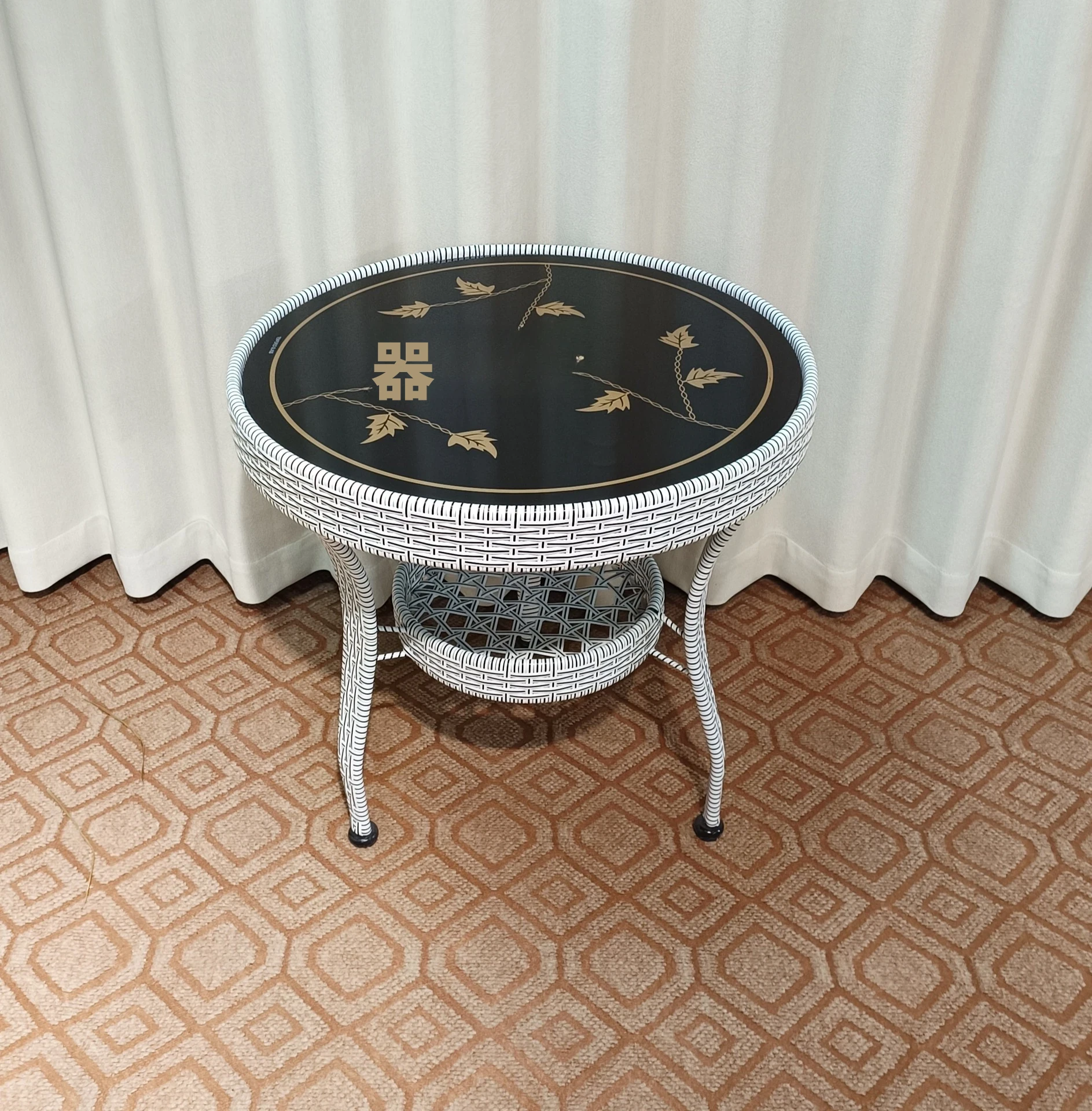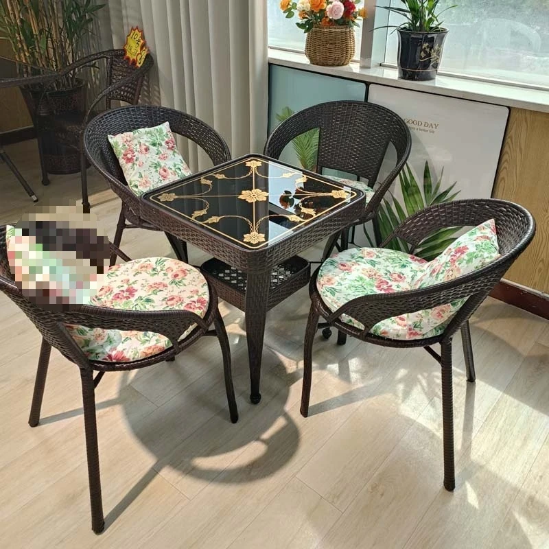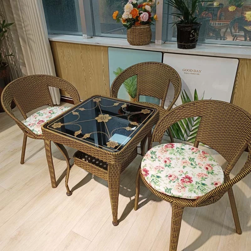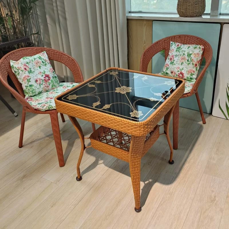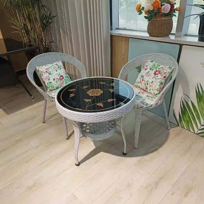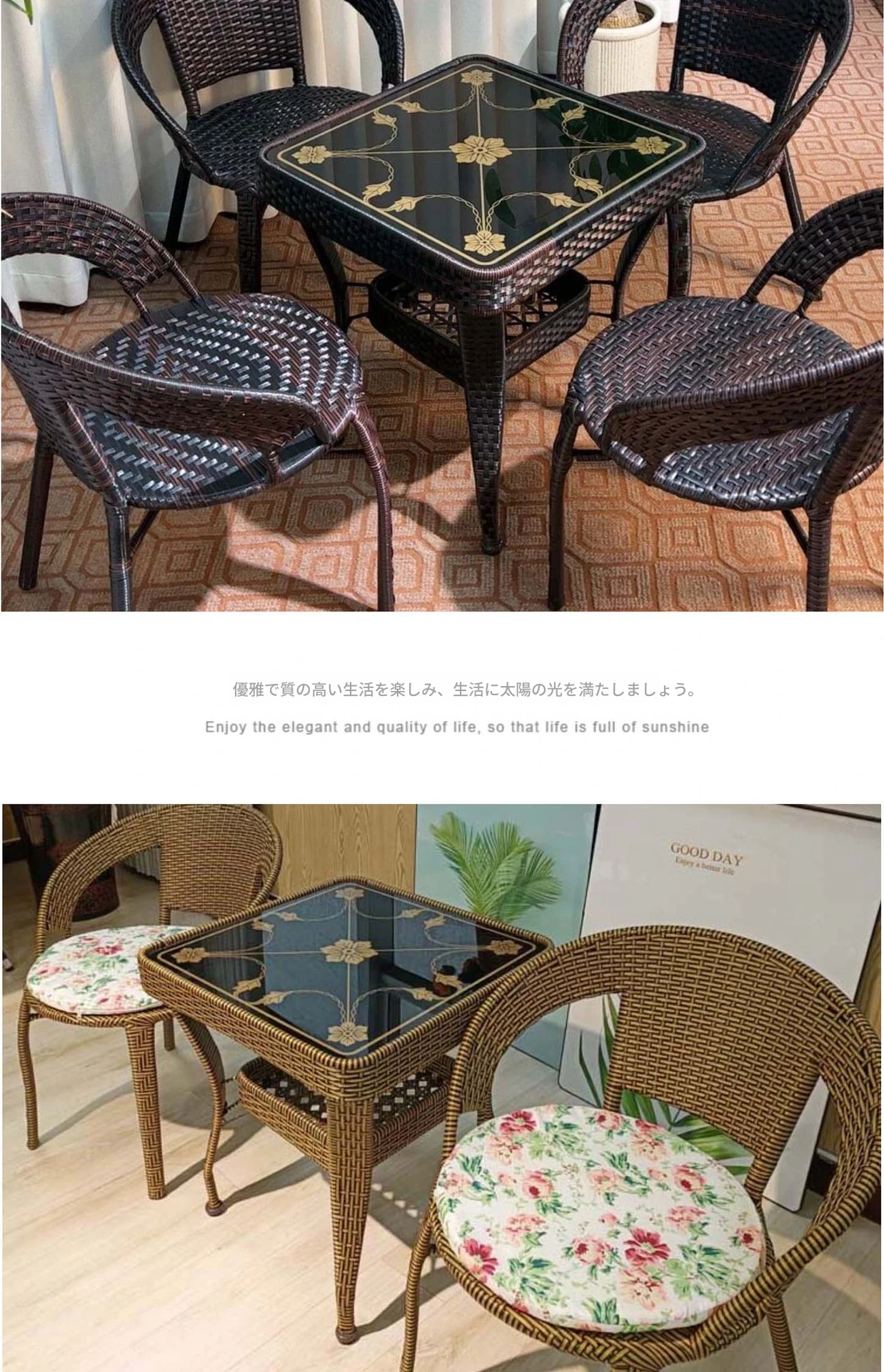 J^藤編みミニテーブル - おしゃれなバルコニー用小茶卓、コンパクトで収納力抜群!鋼化ガラスの優雅なデザインで、リラックスタイムにぴったりな一品。寝室やリビングに彩りを添えます。