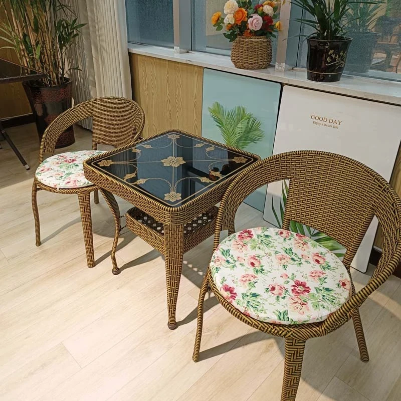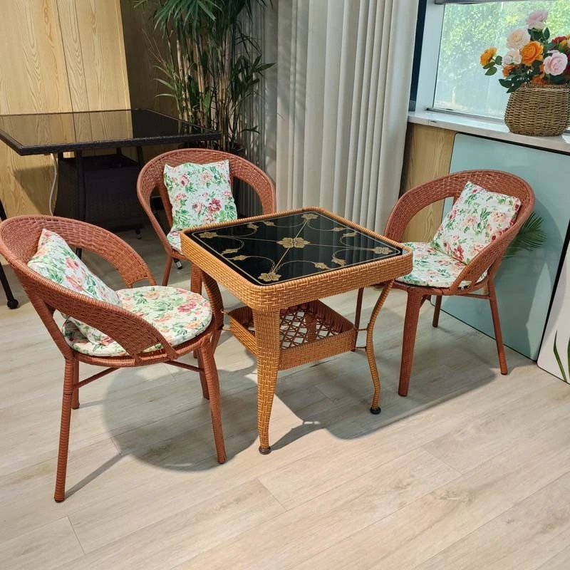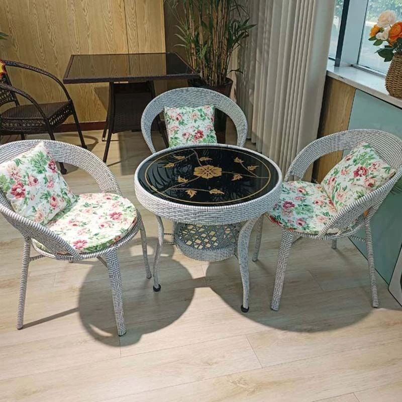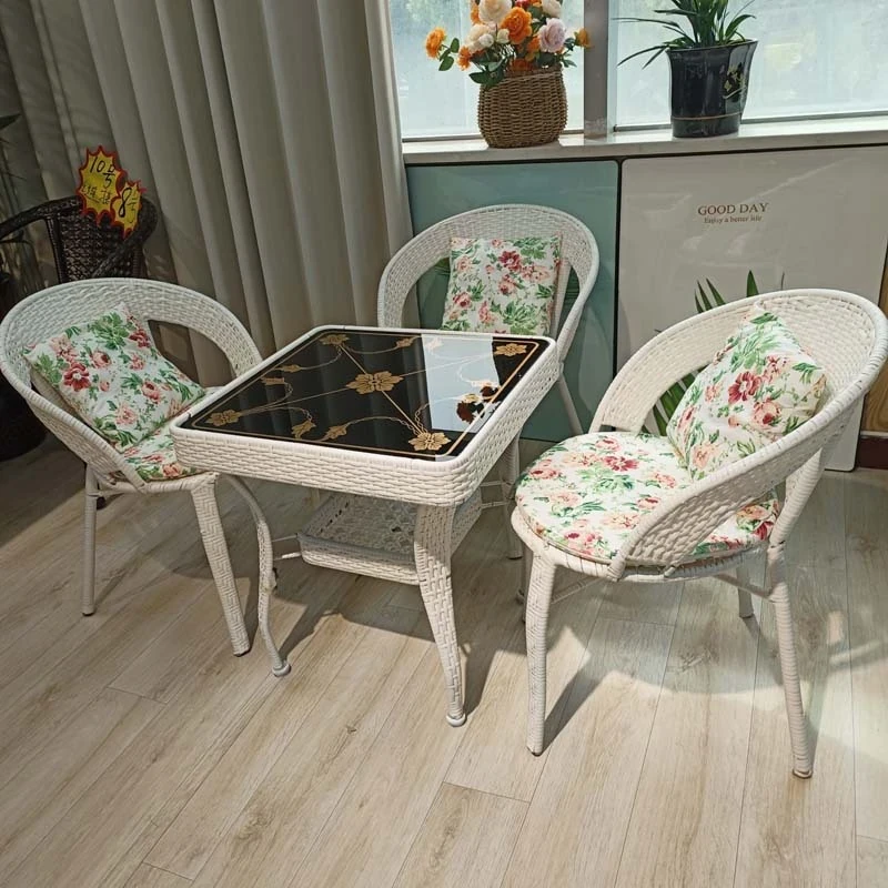 シャンパン3椅子方テーブル(クッション・背もたれ・テーブルクロス)