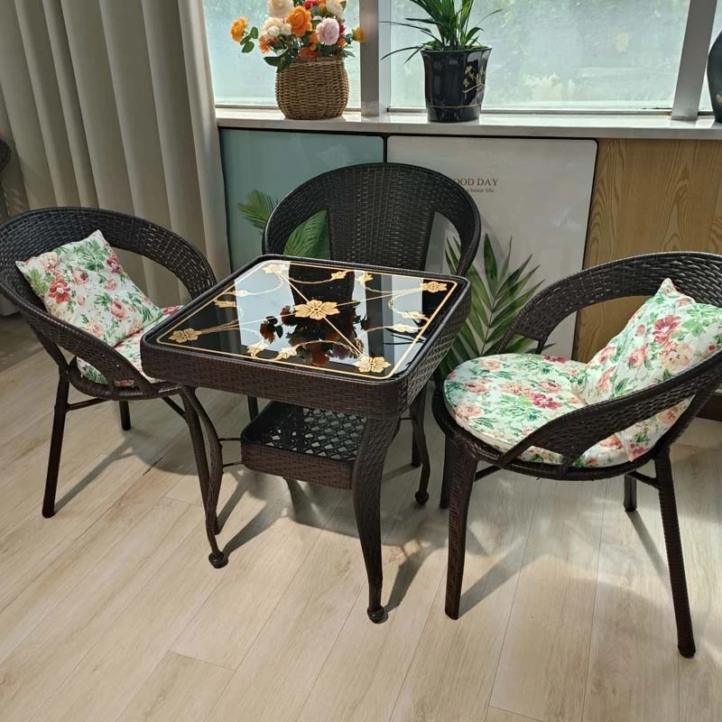ブラックコーヒー3椅子方テーブル(クッション・背もたれ・テーブルクロス)