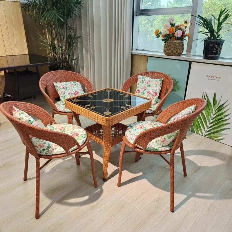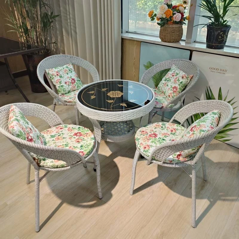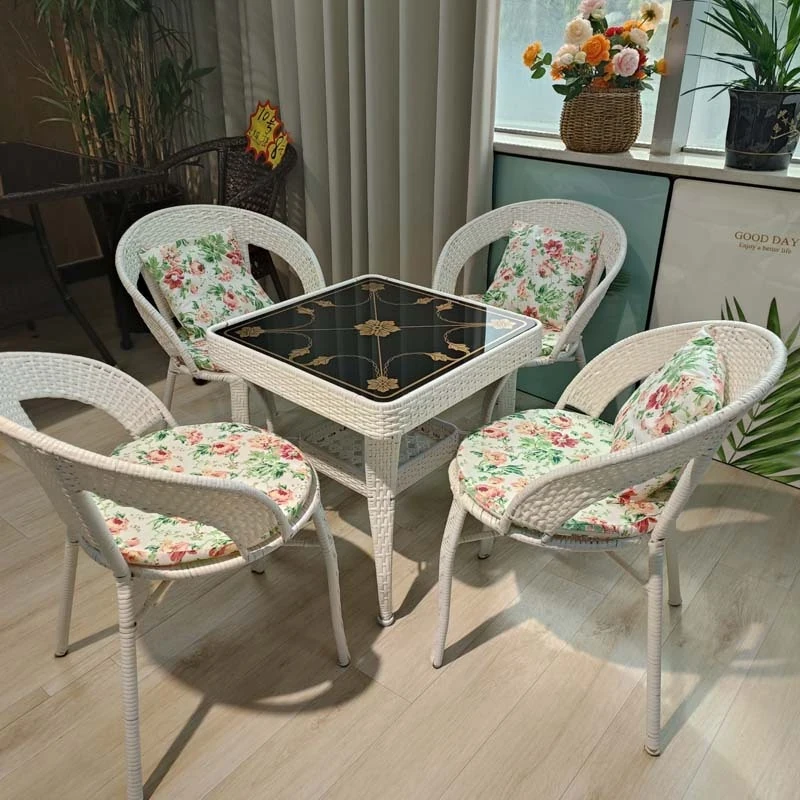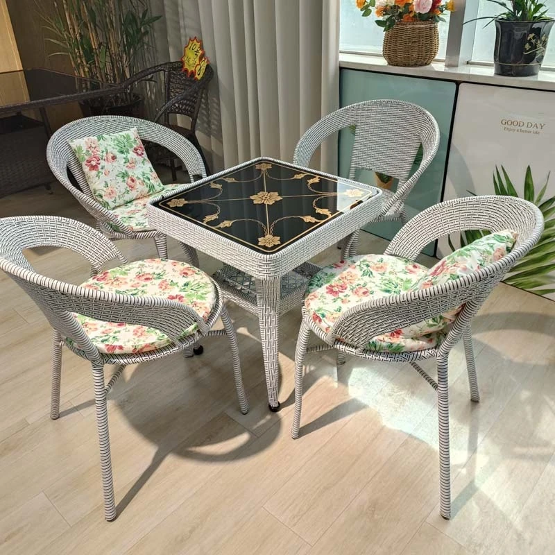シャンパン4椅子方テーブル(クッション・背もたれ・テーブルクロス)