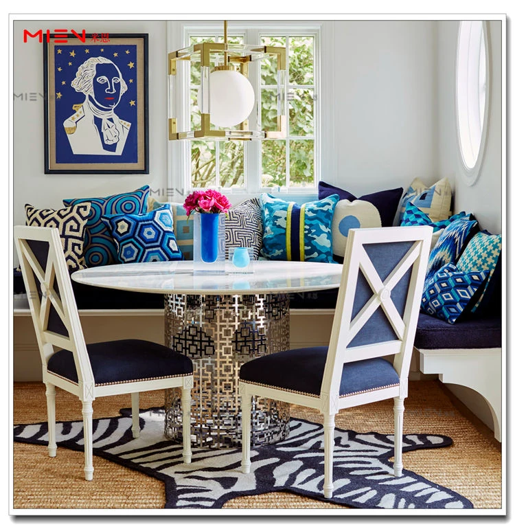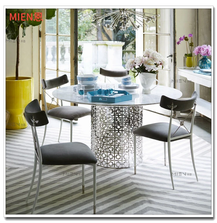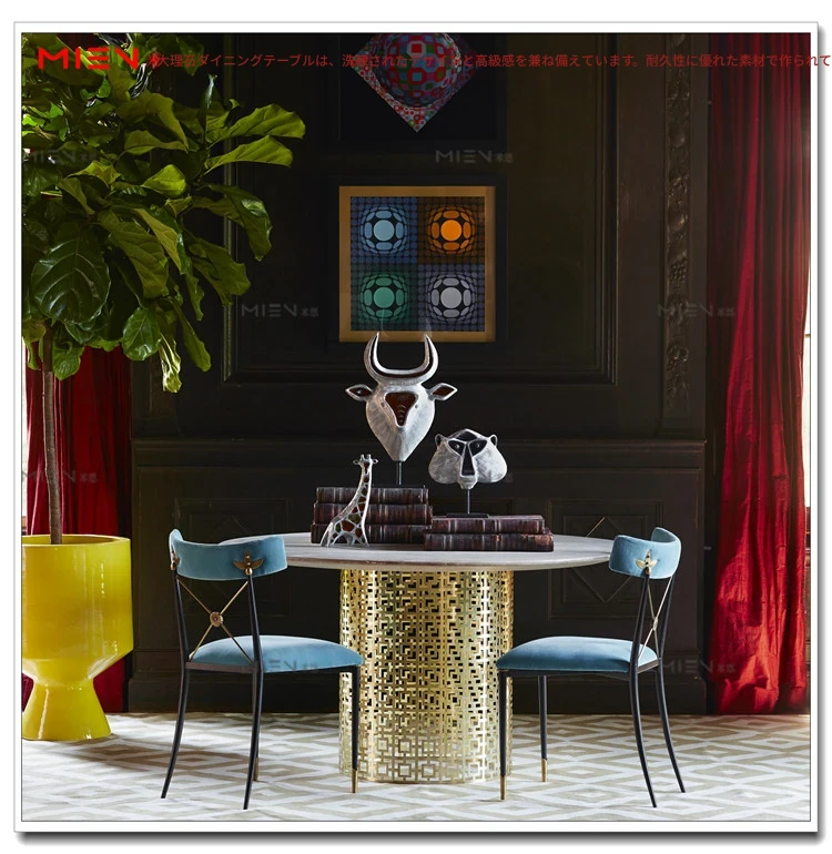 高級感溢れるアメリカンスタイルの別荘用ダイニングテーブルセット!大理石の長方形テーブルは10人掛け、洗練されたデザインでおしゃれな食事空間を演出。ビジネスミーティングにも最適な洽談テーブル!
