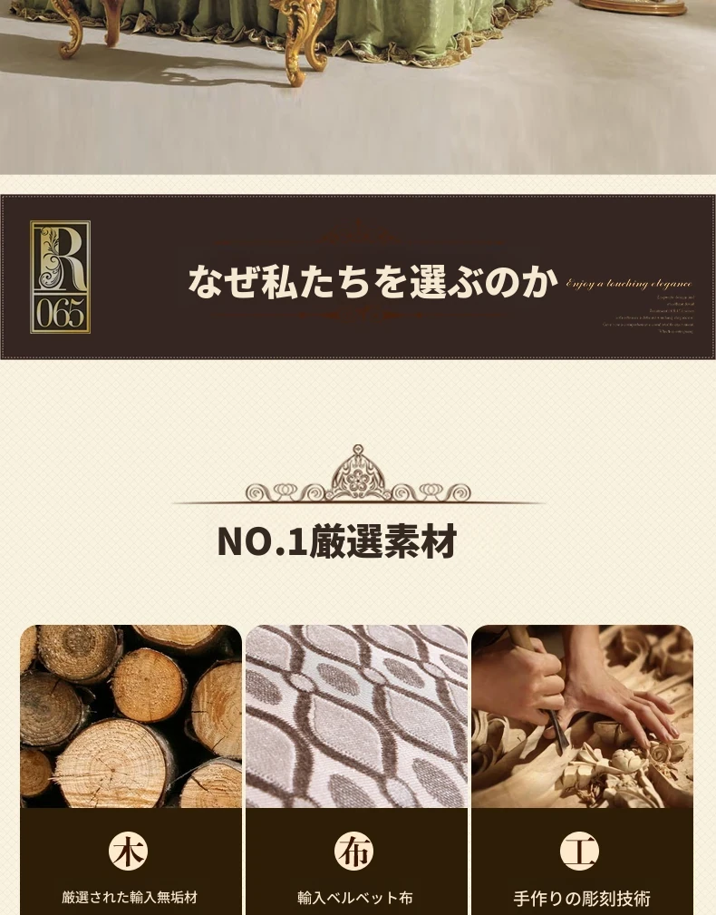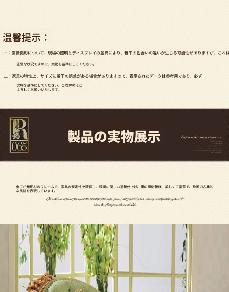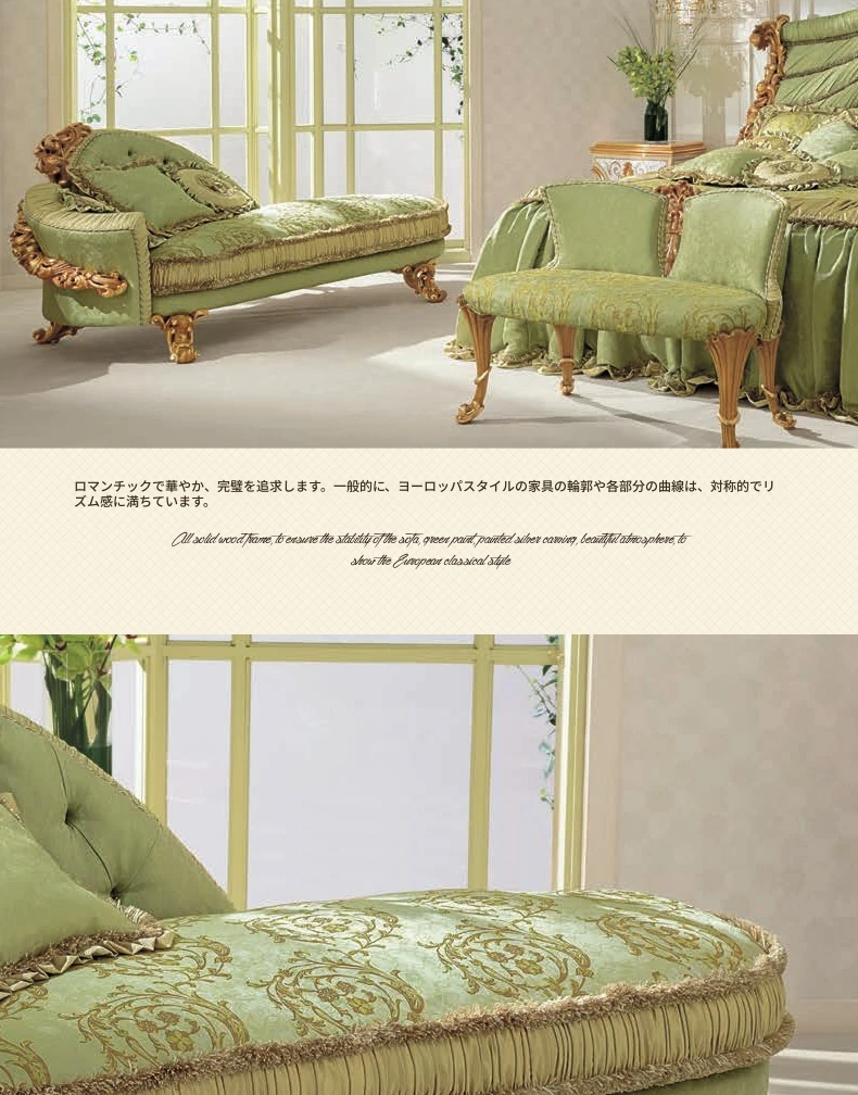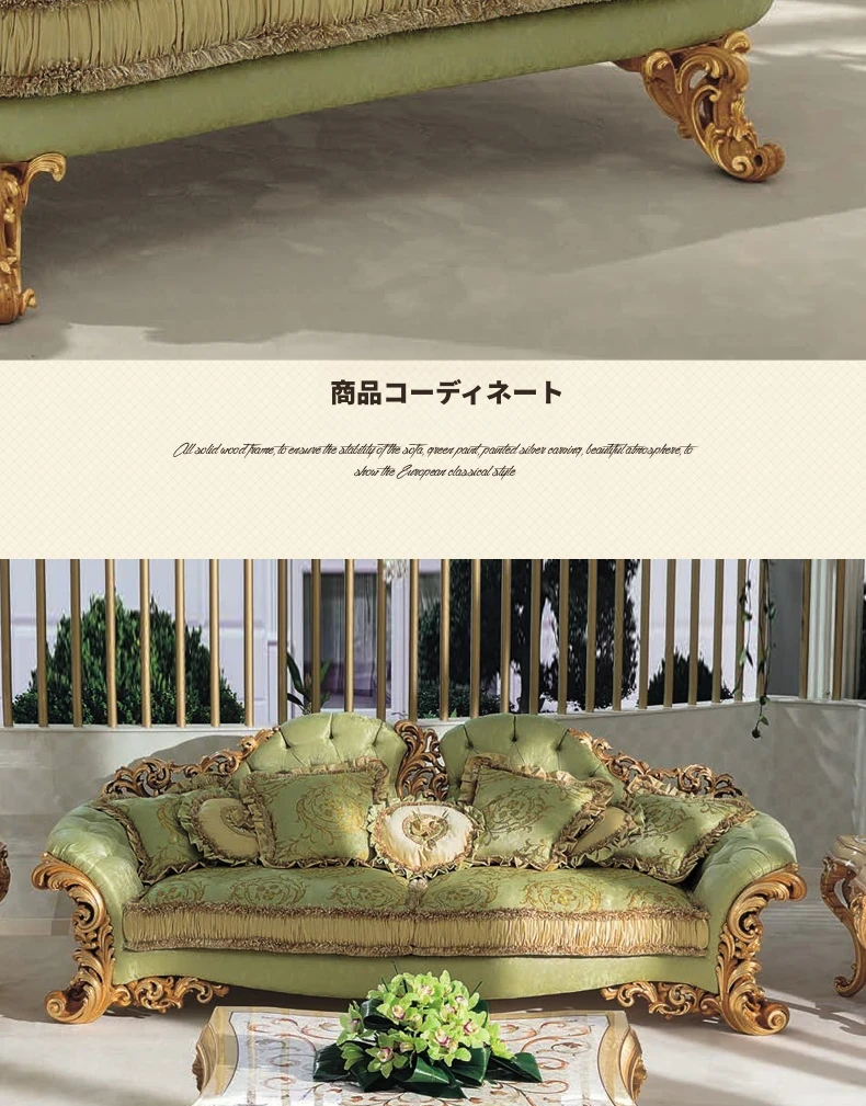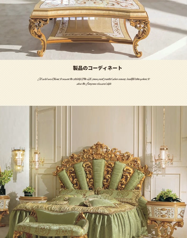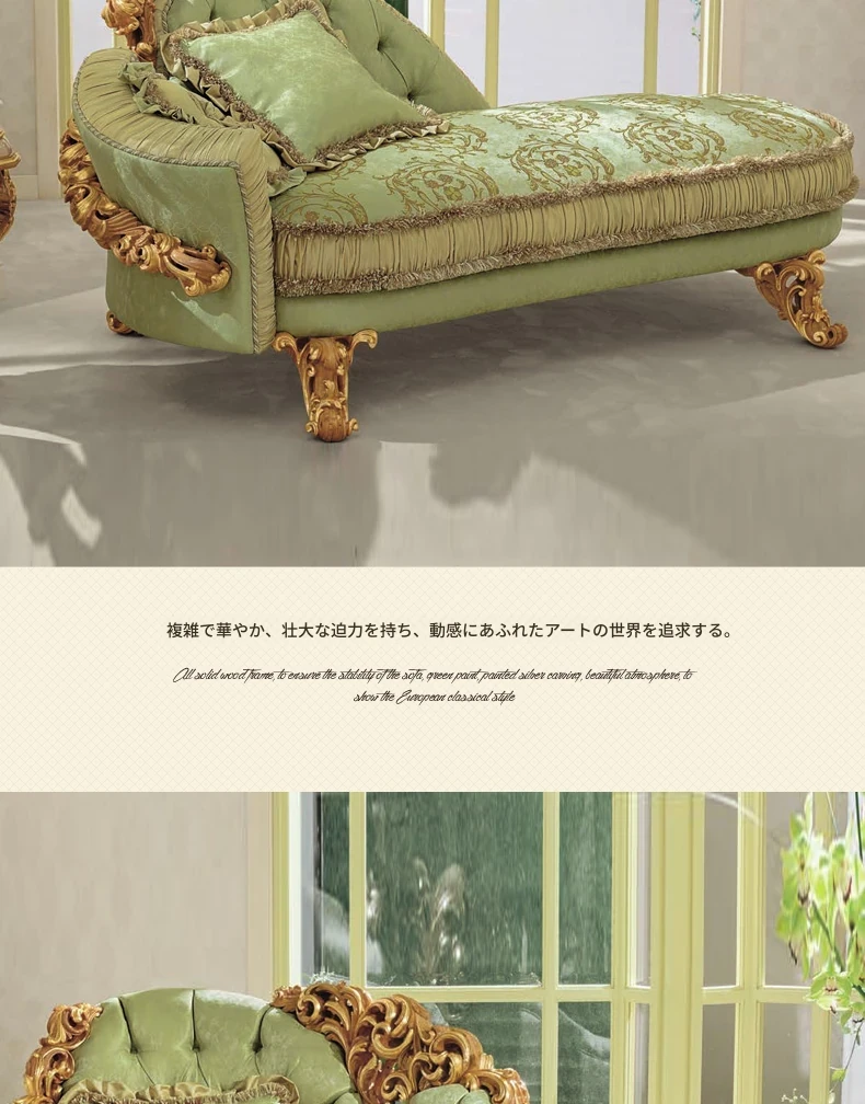 高級感あふれる欧式デザインの貴妃椅子!本物の木材を使用したラグジュアリーなソファチェア。イタリア製の手彫りシェルデザインのヴィンテージロッキングチェアとテーブルがセットで、優雅な空間を演出します。