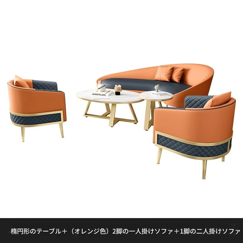 オレンジソファ1+1+2+楕円形テーブルセット