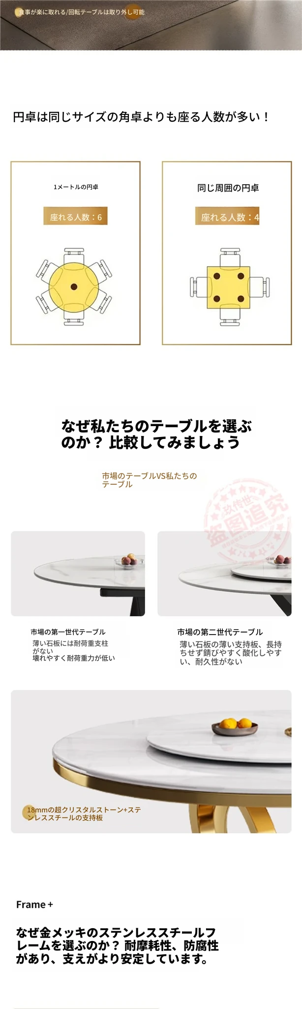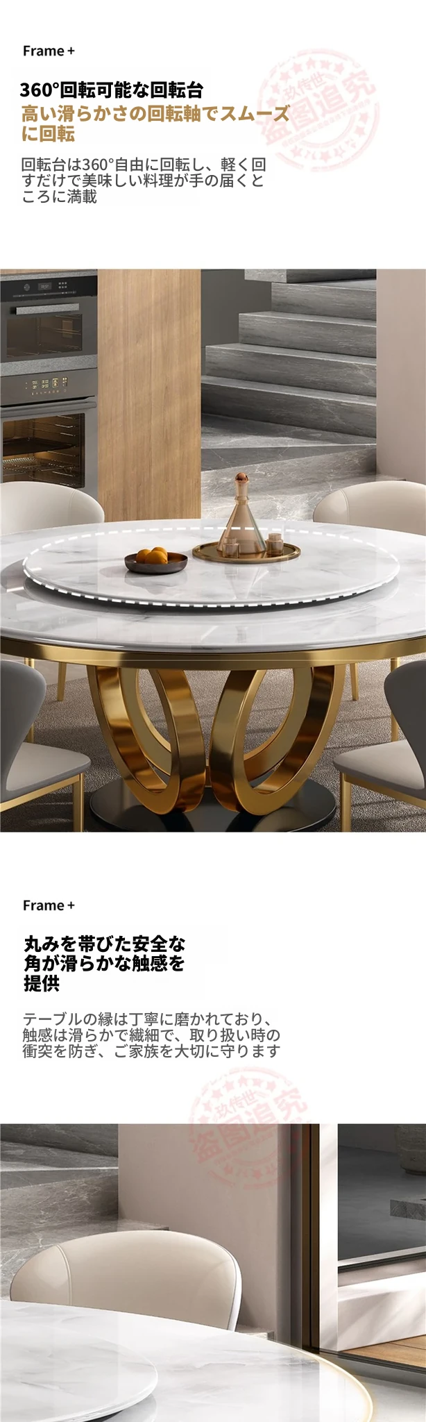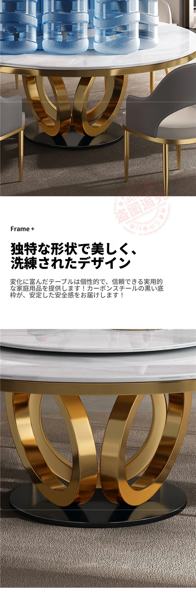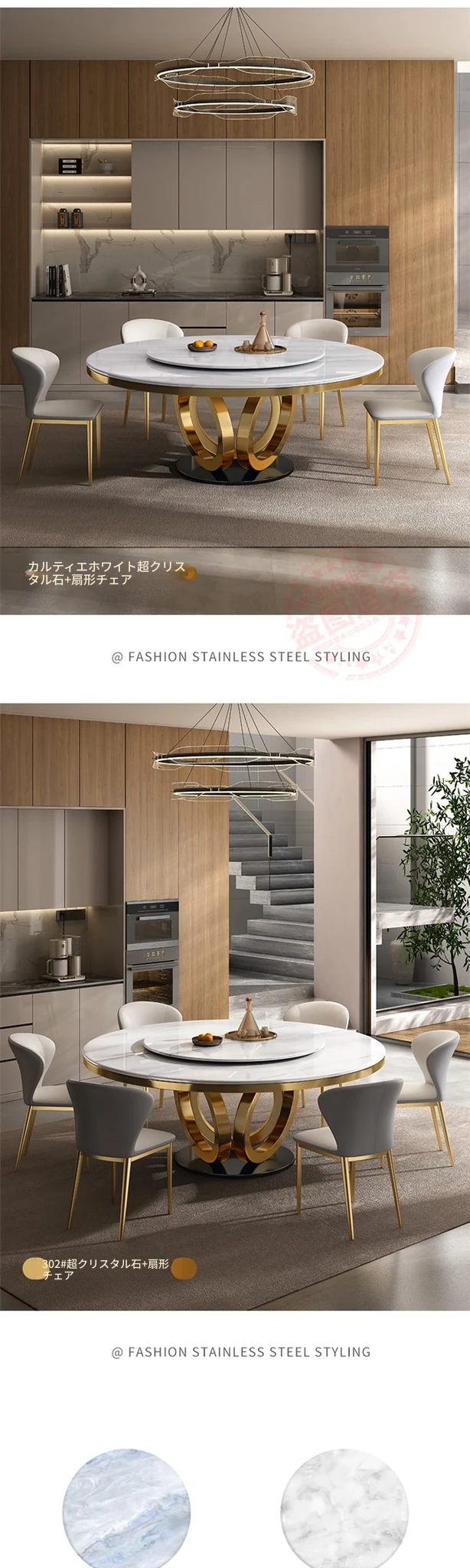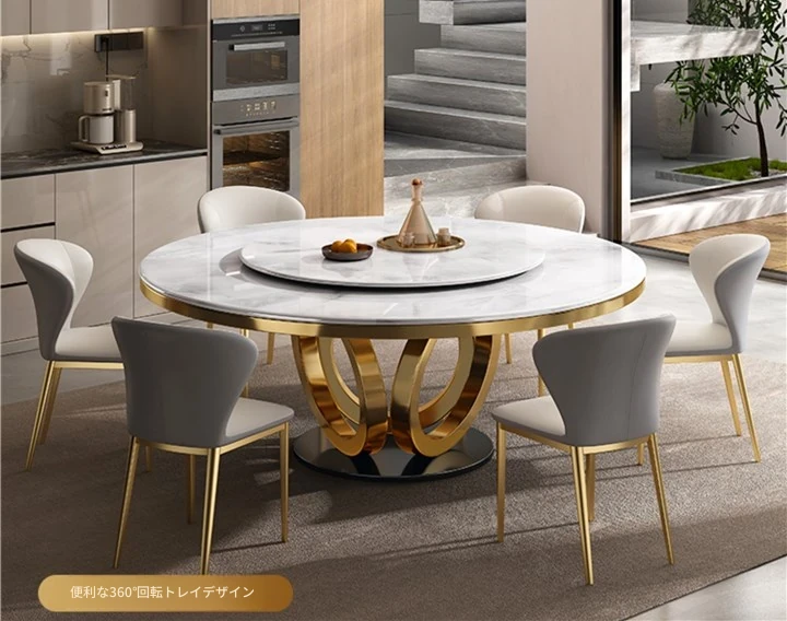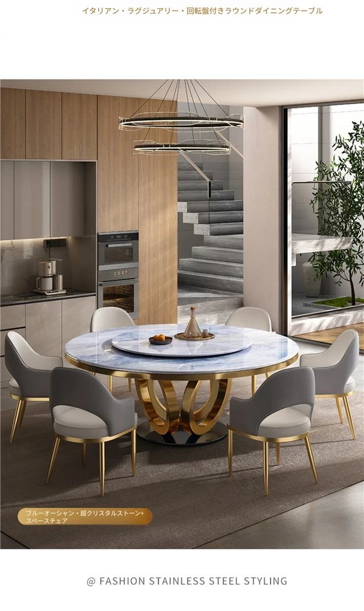超高級クリスタルストーン製のダイニングテーブル&チェアセット!小スペースに最適なラウンドデザインのマーブルテーブル、回転盤付きで便利。家庭での特別なひとときを演出する夢のアイテムです!