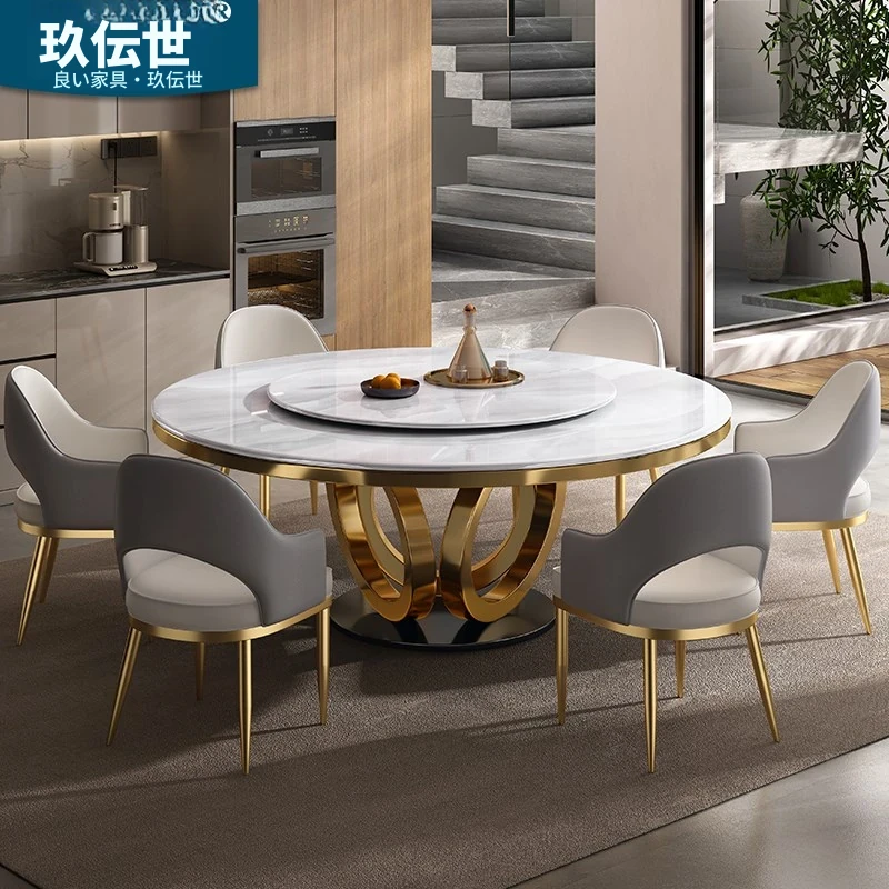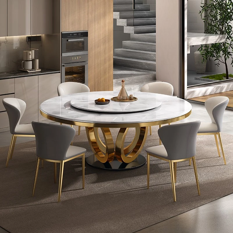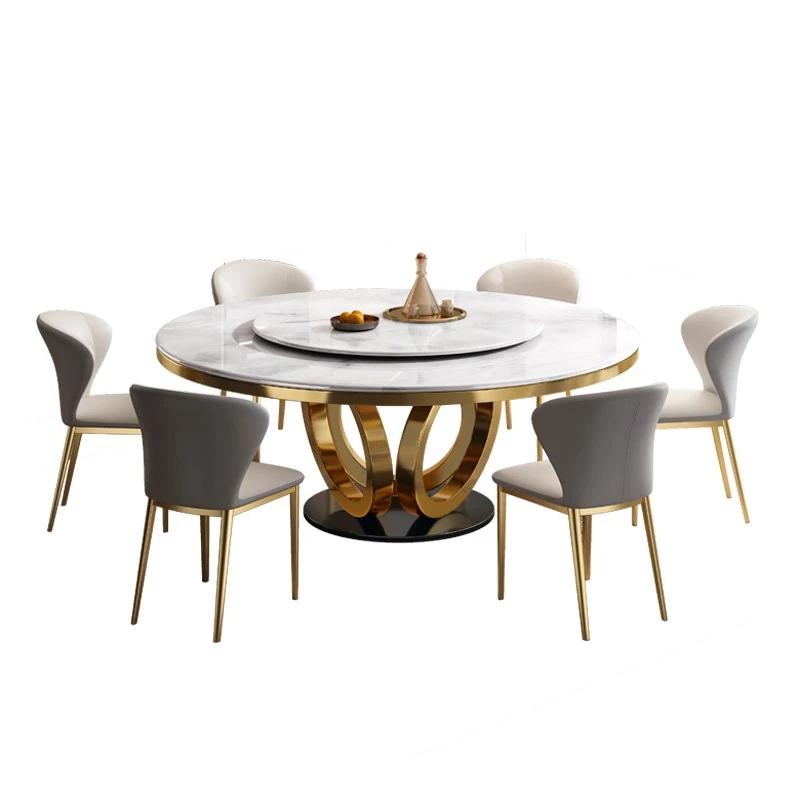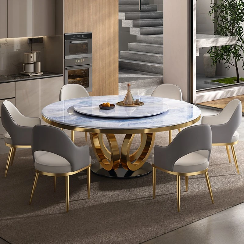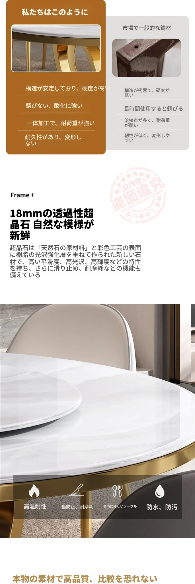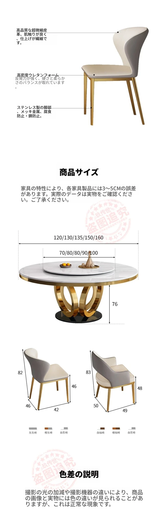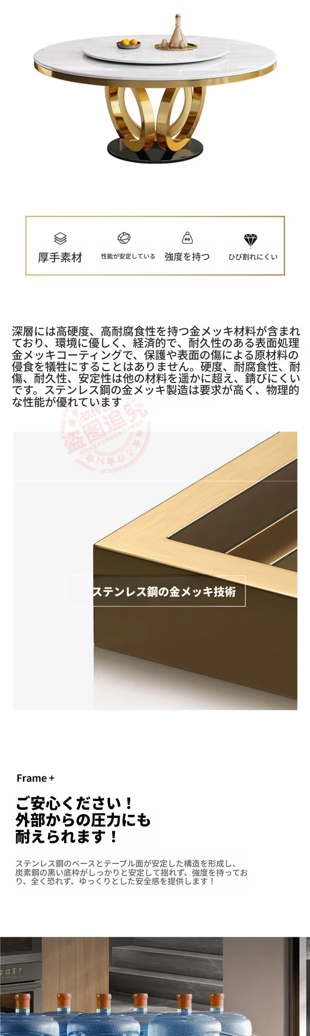 超高級クリスタルストーン製のダイニングテーブル&チェアセット!小スペースに最適なラウンドデザインのマーブルテーブル、回転盤付きで便利。家庭での特別なひとときを演出する夢のアイテムです!