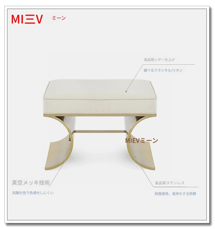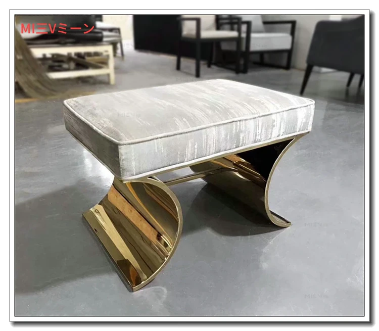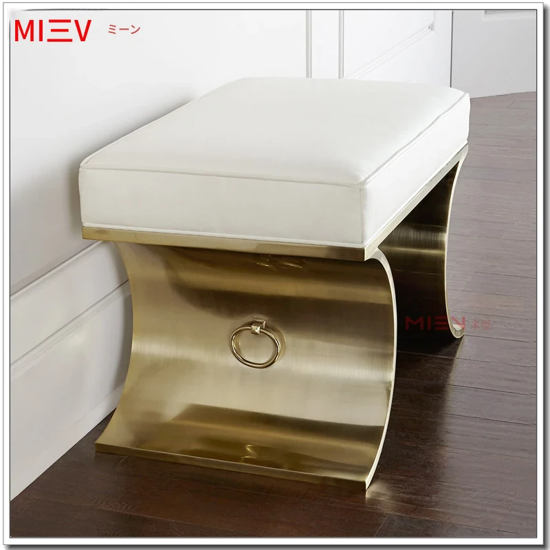 アメリカンスタイルの軽奢華!ステンレス製のベッドルーム用ドレッシングスツール - シンプルでモダンなデザインの靴ベンチ、ピアノスツール、ソファスツールとしても使える!快適さとスタイルを両立させた一品です。