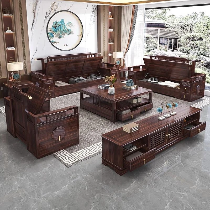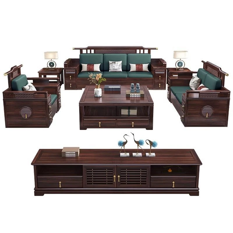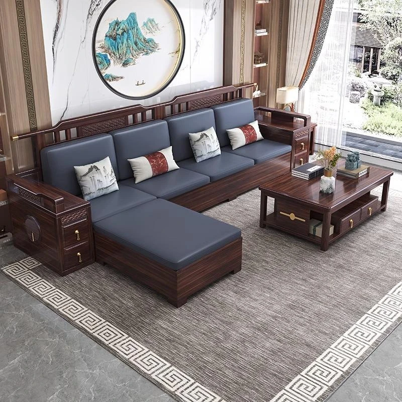 新中式ウッドブラックソファセット - モダンでシンプルな高級感あふれるリビングルームにぴったりの贅沢なデザイン、上質な素材で心地よいひとときをお届けします。