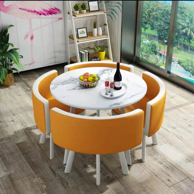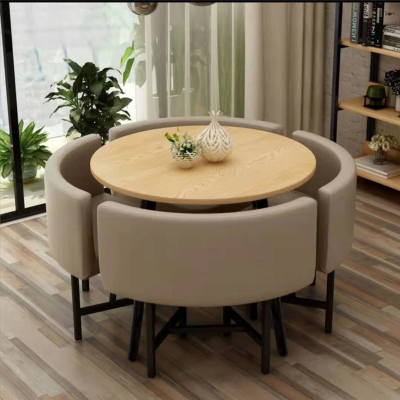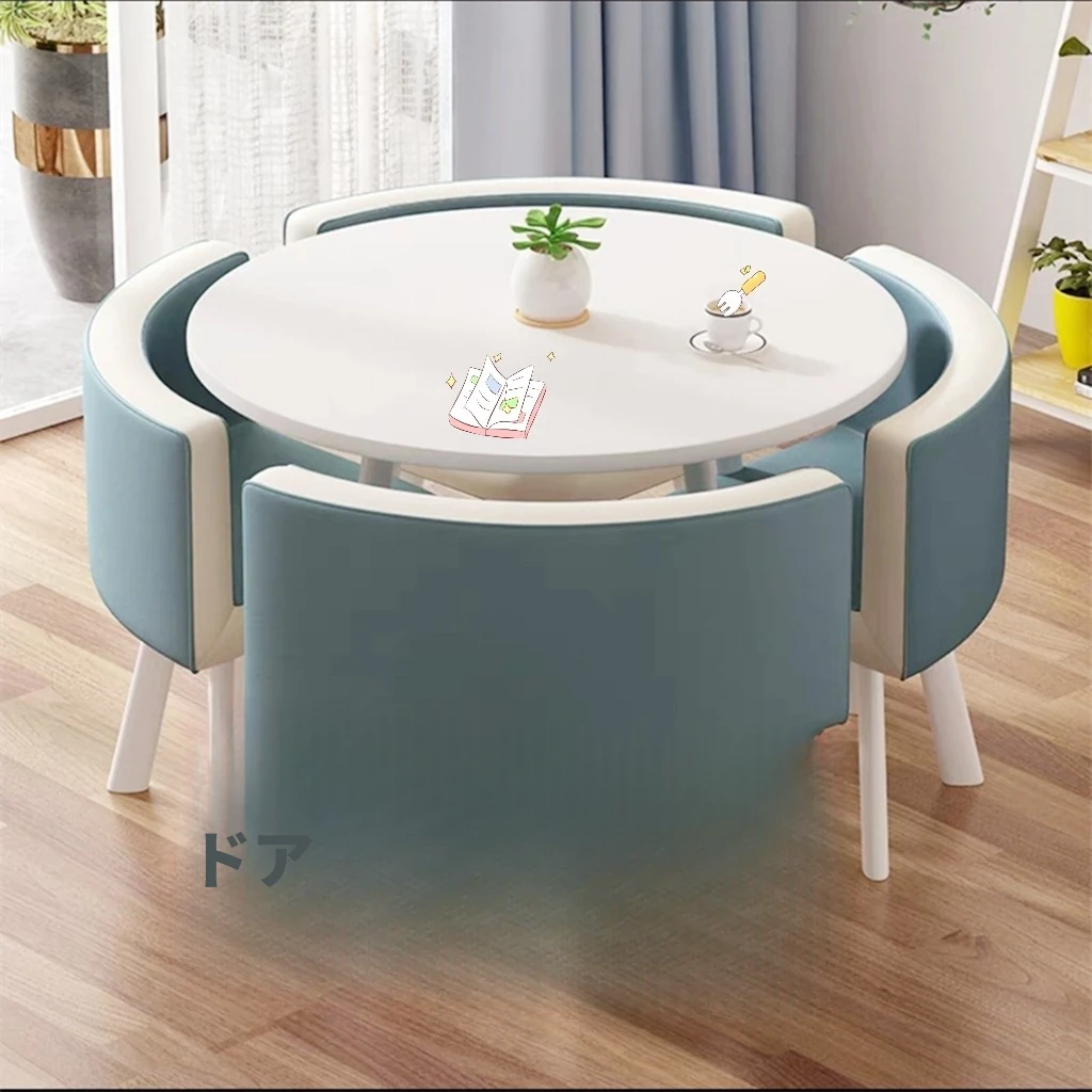 現代的シンプルなデザインの小さな円卓、スタイリッシュな接待やリラックス空間に最適!オフィスのティーエリアや商談にぴったりなテーブル&チェアのセット。あなたのビジネスシーンを一層引き立てます!