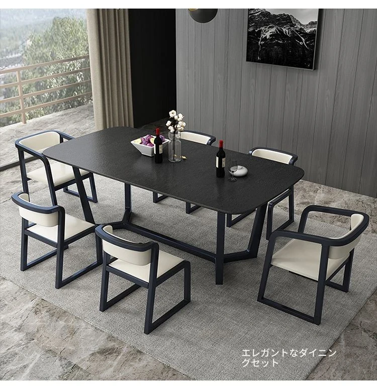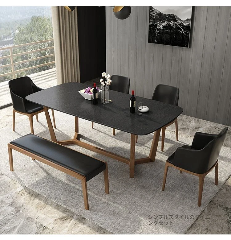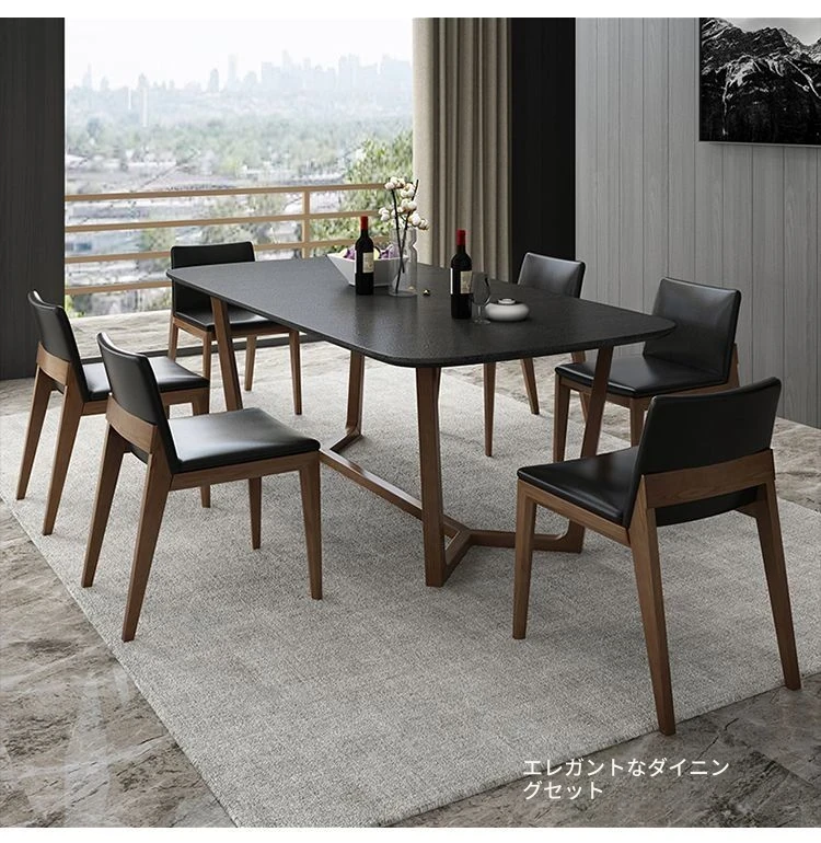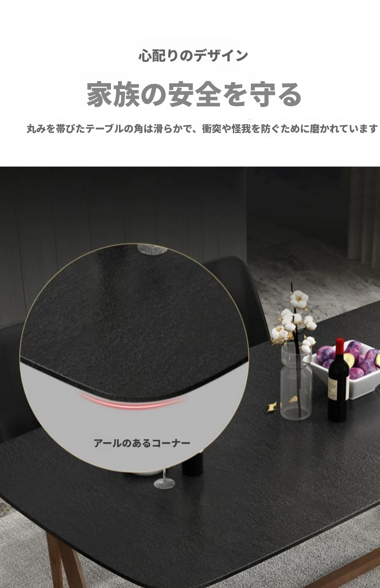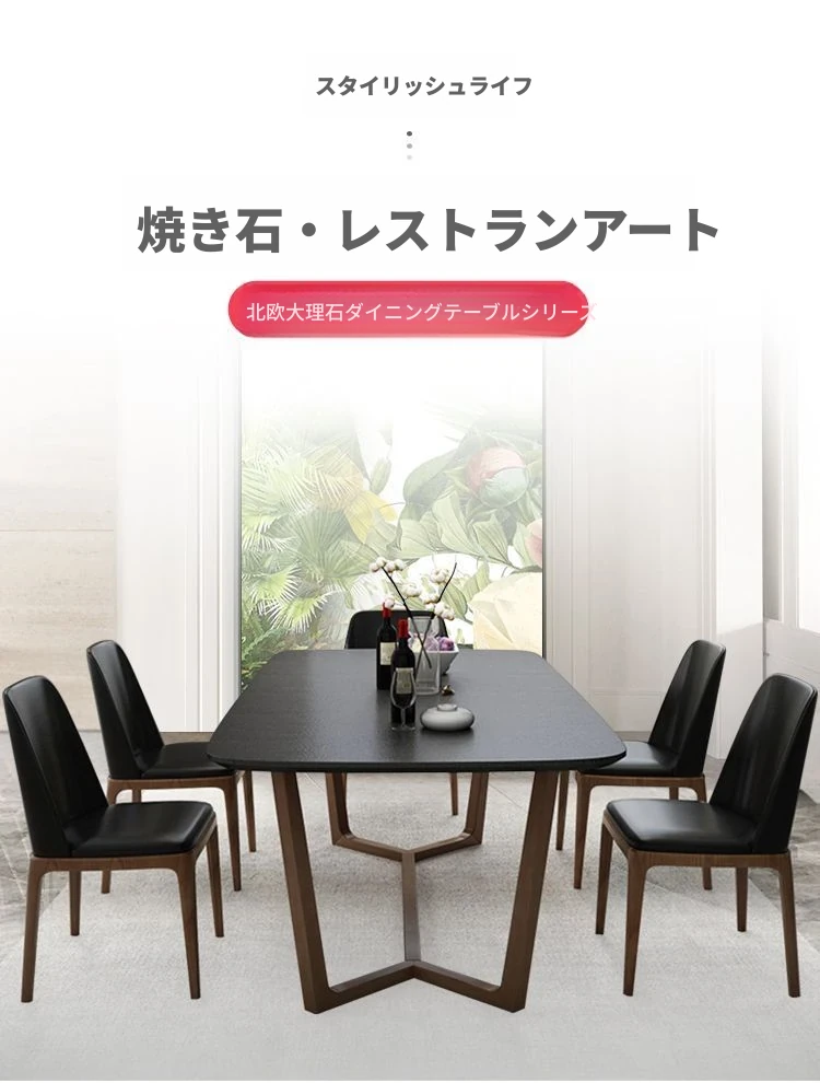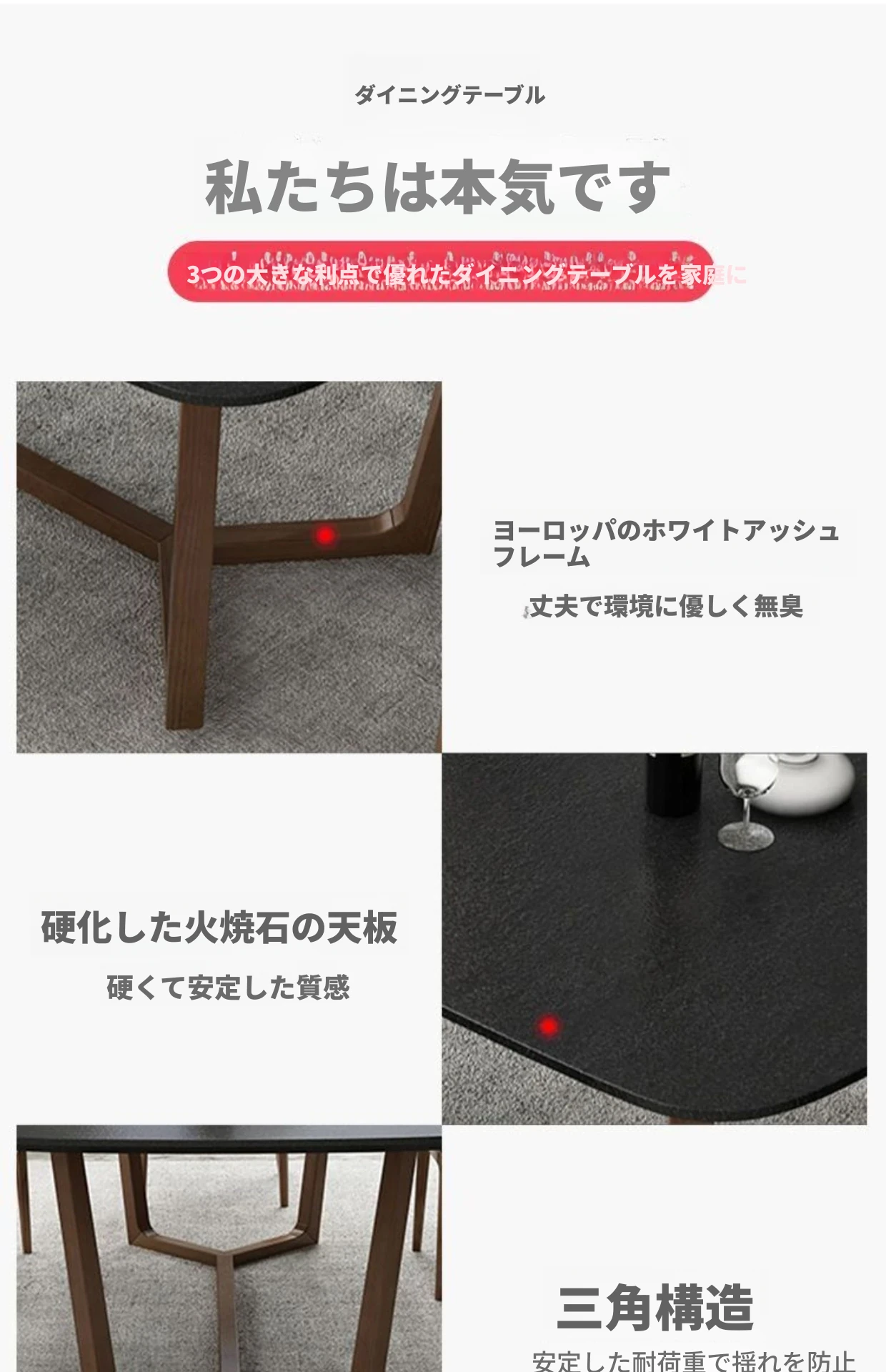 シンプルな北欧スタイルの火山石ダイニングテーブルセット - スタイリッシュな黒大理石テーブル、コンパクトな家族向けモダンデザインの食事テーブル!小さなお部屋にもぴったり!