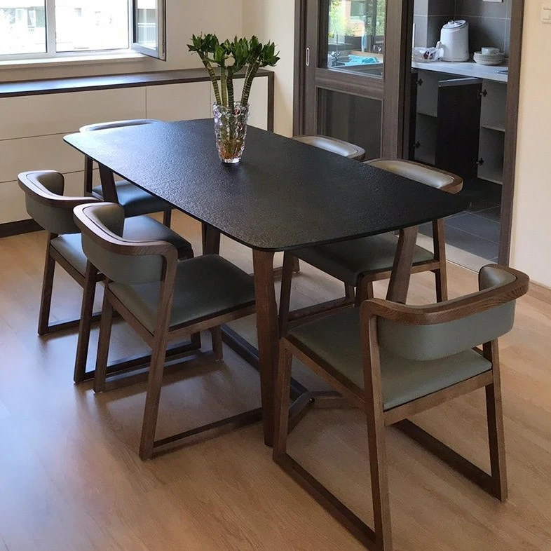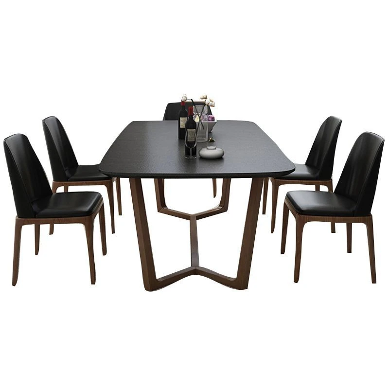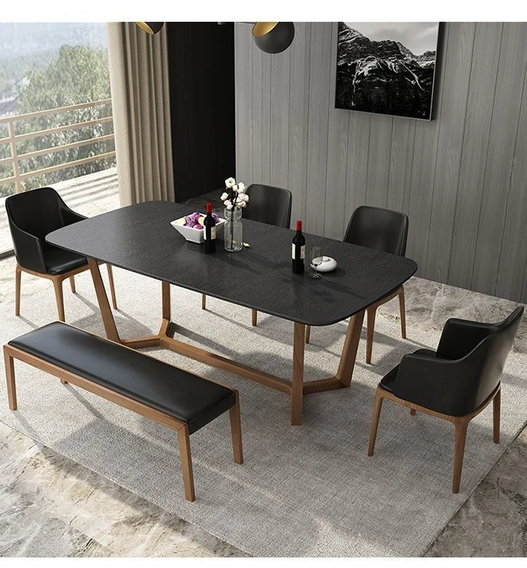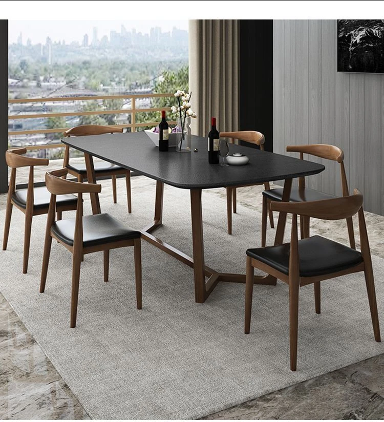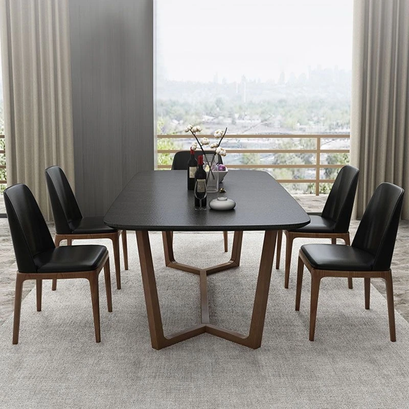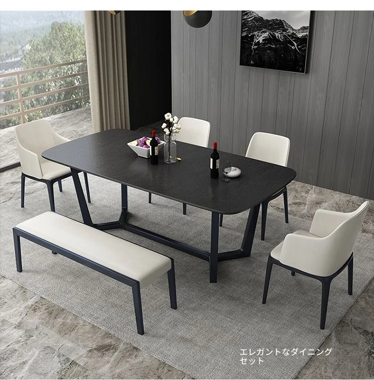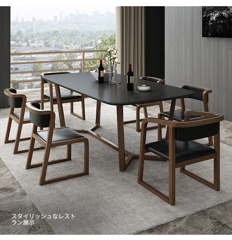 シンプルな北欧スタイルの火山石ダイニングテーブルセット - スタイリッシュな黒大理石テーブル、コンパクトな家族向けモダンデザインの食事テーブル!小さなお部屋にもぴったり!