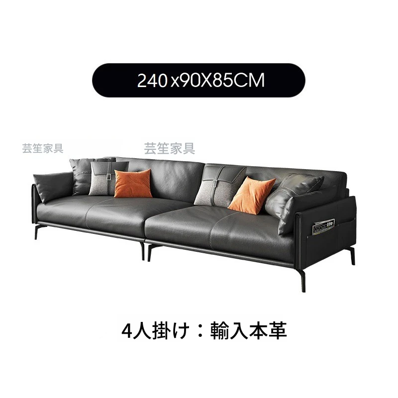 小さな4人用ソファ2.4メートル【トップグレードの牛革】