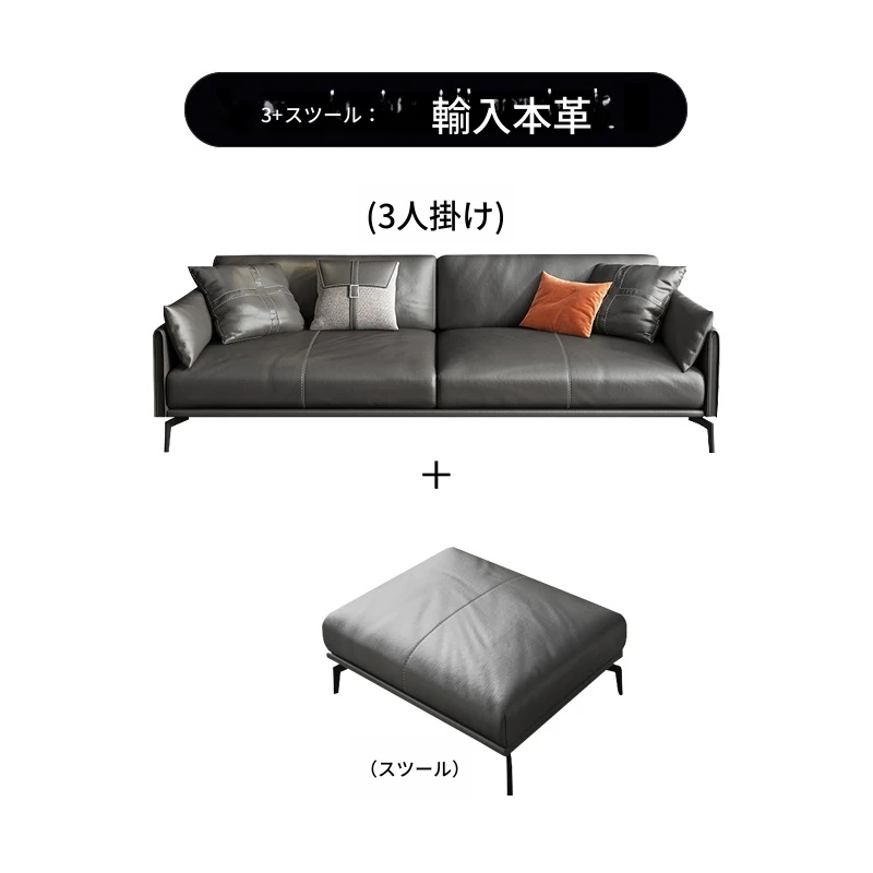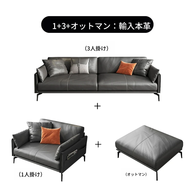 シングルソファ+3人用ソファ+オットマン【トップグレードの牛革】