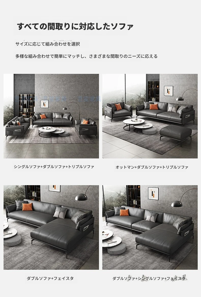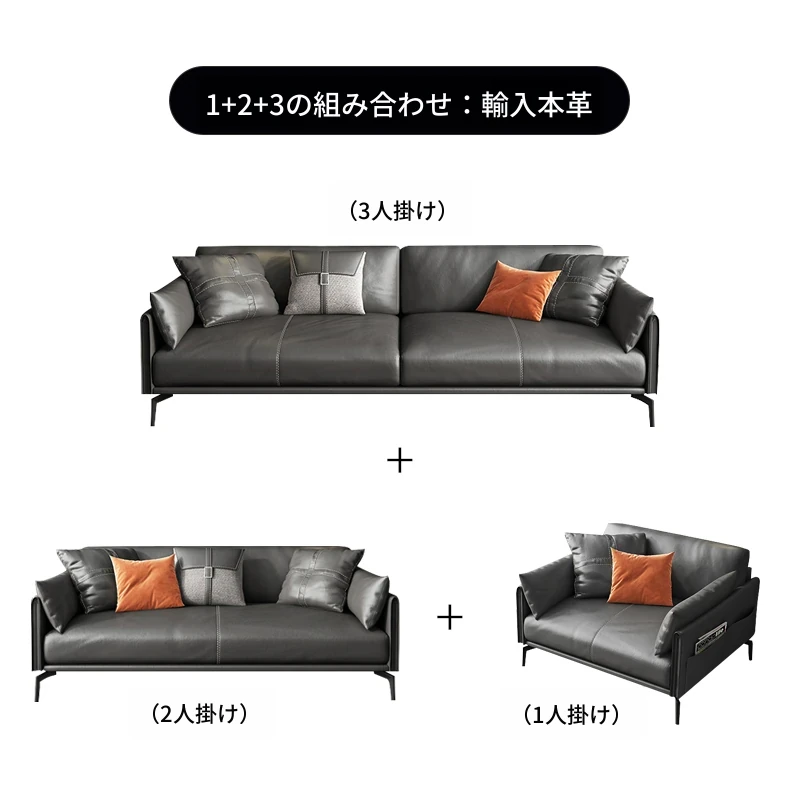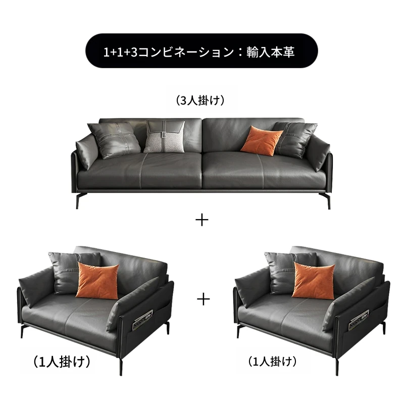 シングル+ダブル+3人用ソファ【トップグレードの牛革】