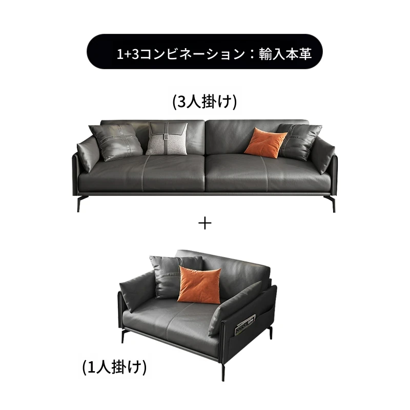 シングルソファ+3人用ソファ【トップグレードの牛革】