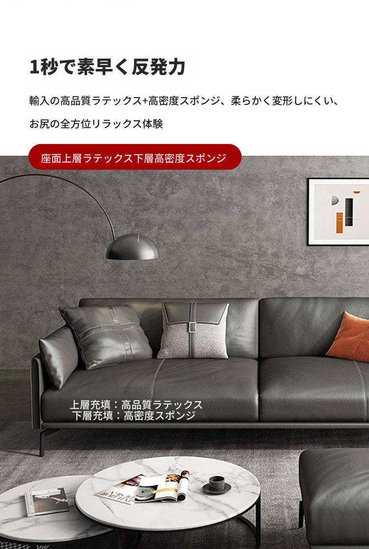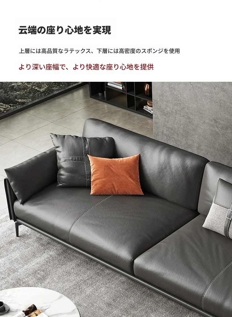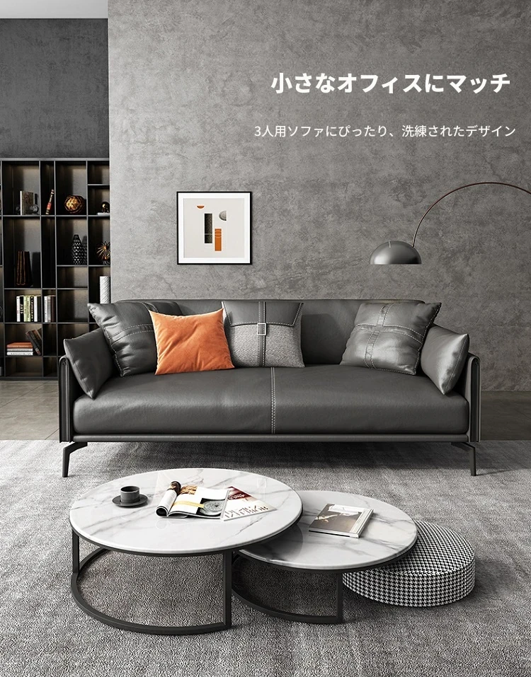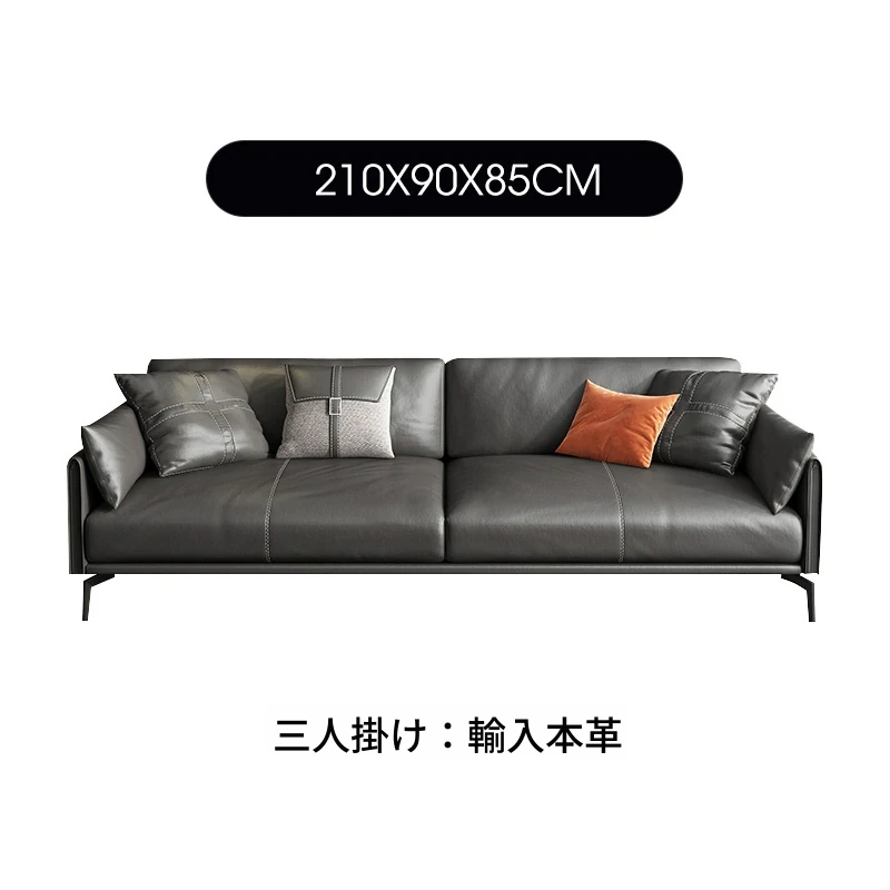 北欧スタイルの本革ソファー|イタリアンミニマリズム|小型リビングに最適なモダン3人掛け|快適な民宿やアパートにぴったりな直線デザイン!