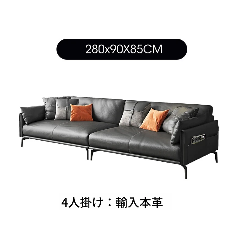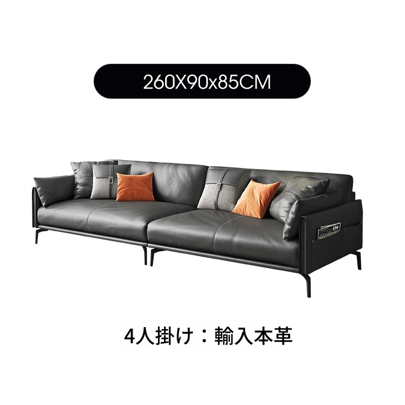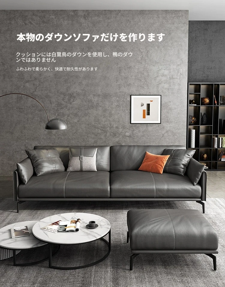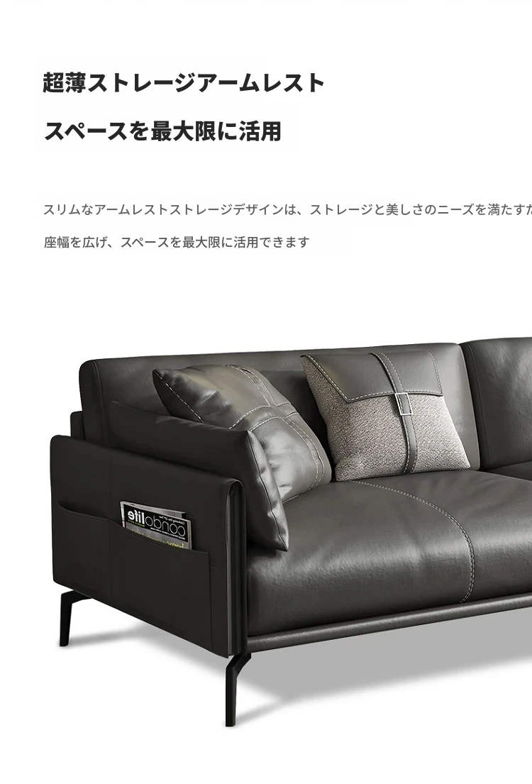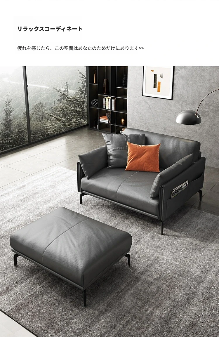 北欧スタイルの本革ソファー|イタリアンミニマリズム|小型リビングに最適なモダン3人掛け|快適な民宿やアパートにぴったりな直線デザイン!