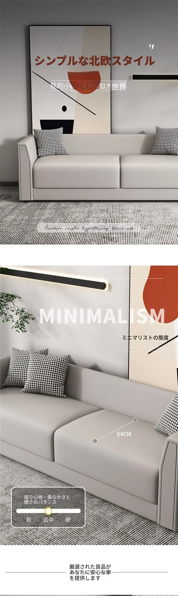 北欧スタイルのレザーソファ - 小型オフィスやアパレル店舗に最適なシンプルでモダンな2人掛け・3人掛けソファ。インス風のデザインで、居心地の良い空間を演出します!