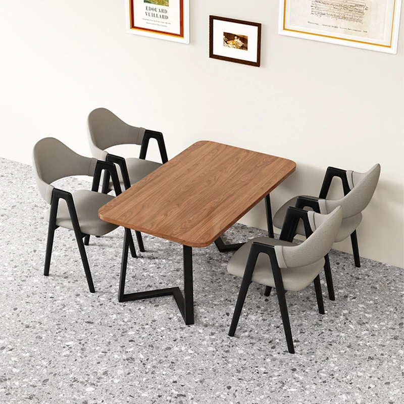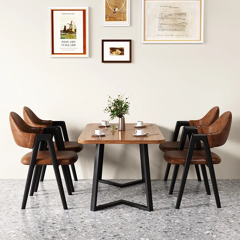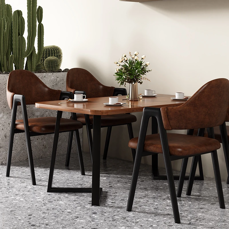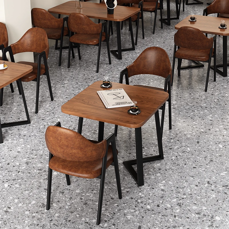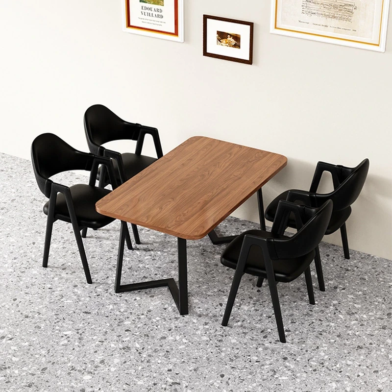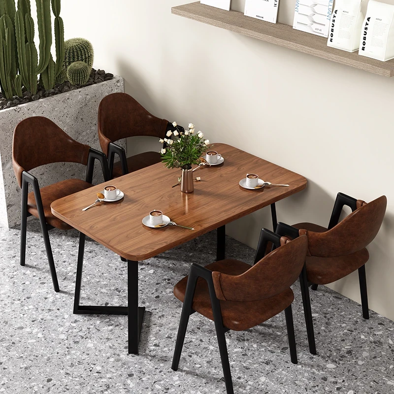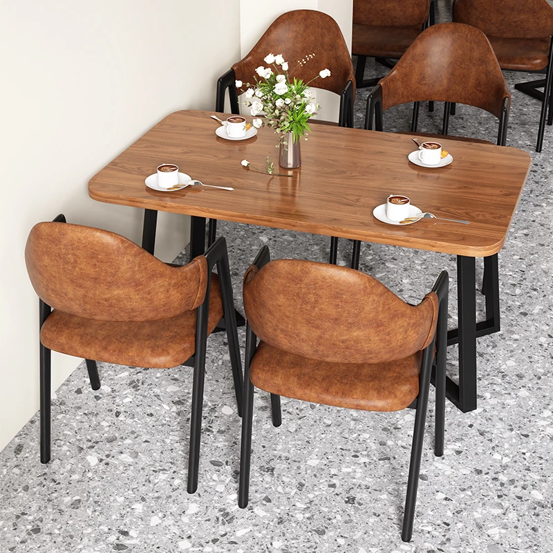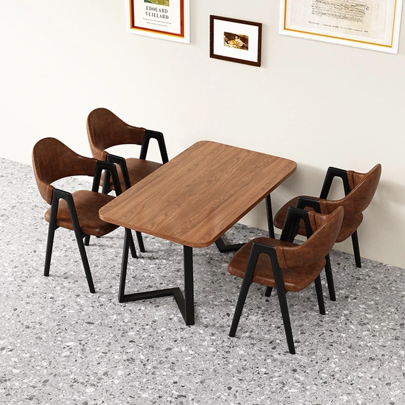 レトロデザインの長方形テーブルセット!飲食店専用の快適な食事スペース、ファーストフード店や小吃店に最適。おしゃれな雰囲気でお客様を惹きつける、商用利用にぴったりのテーブルと椅子のコンビネーション!