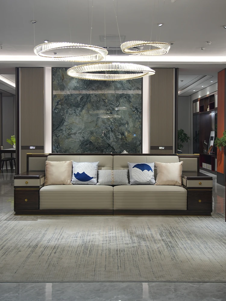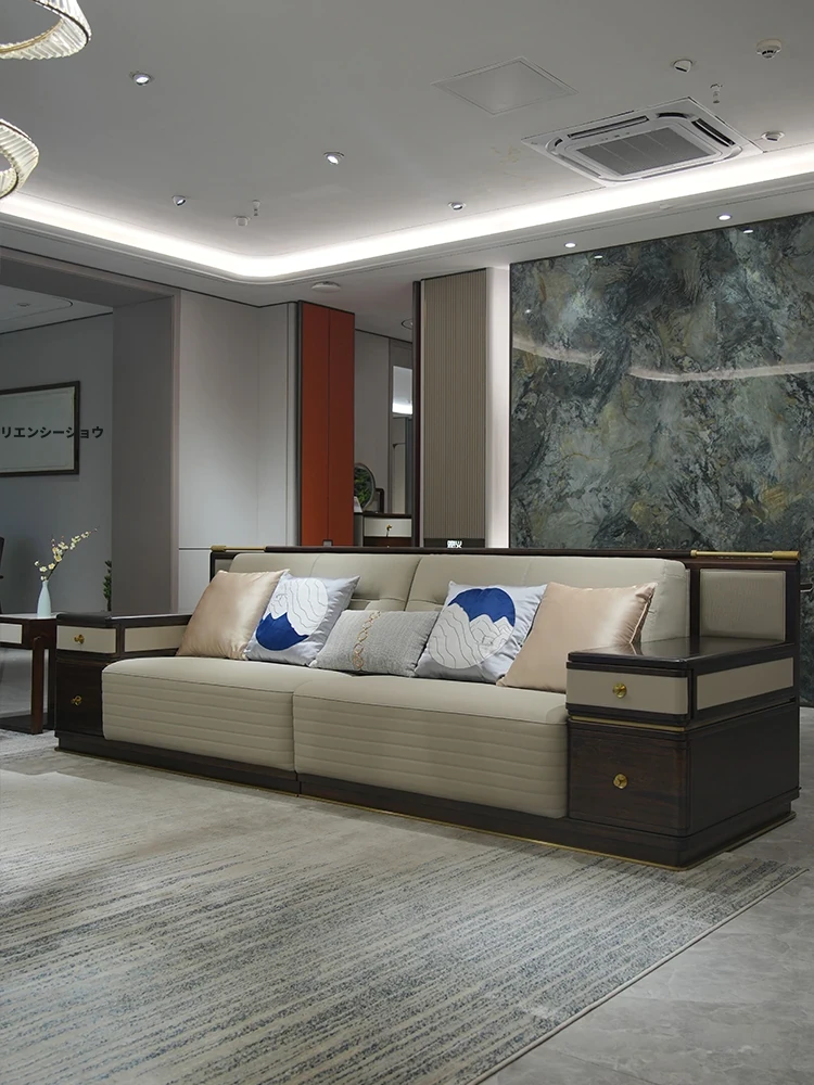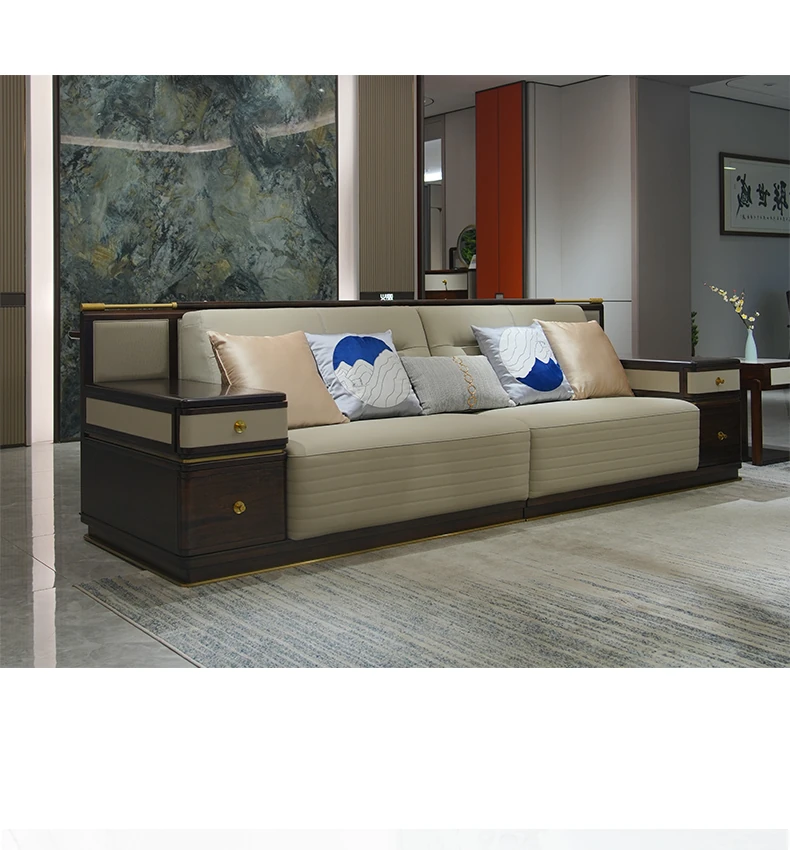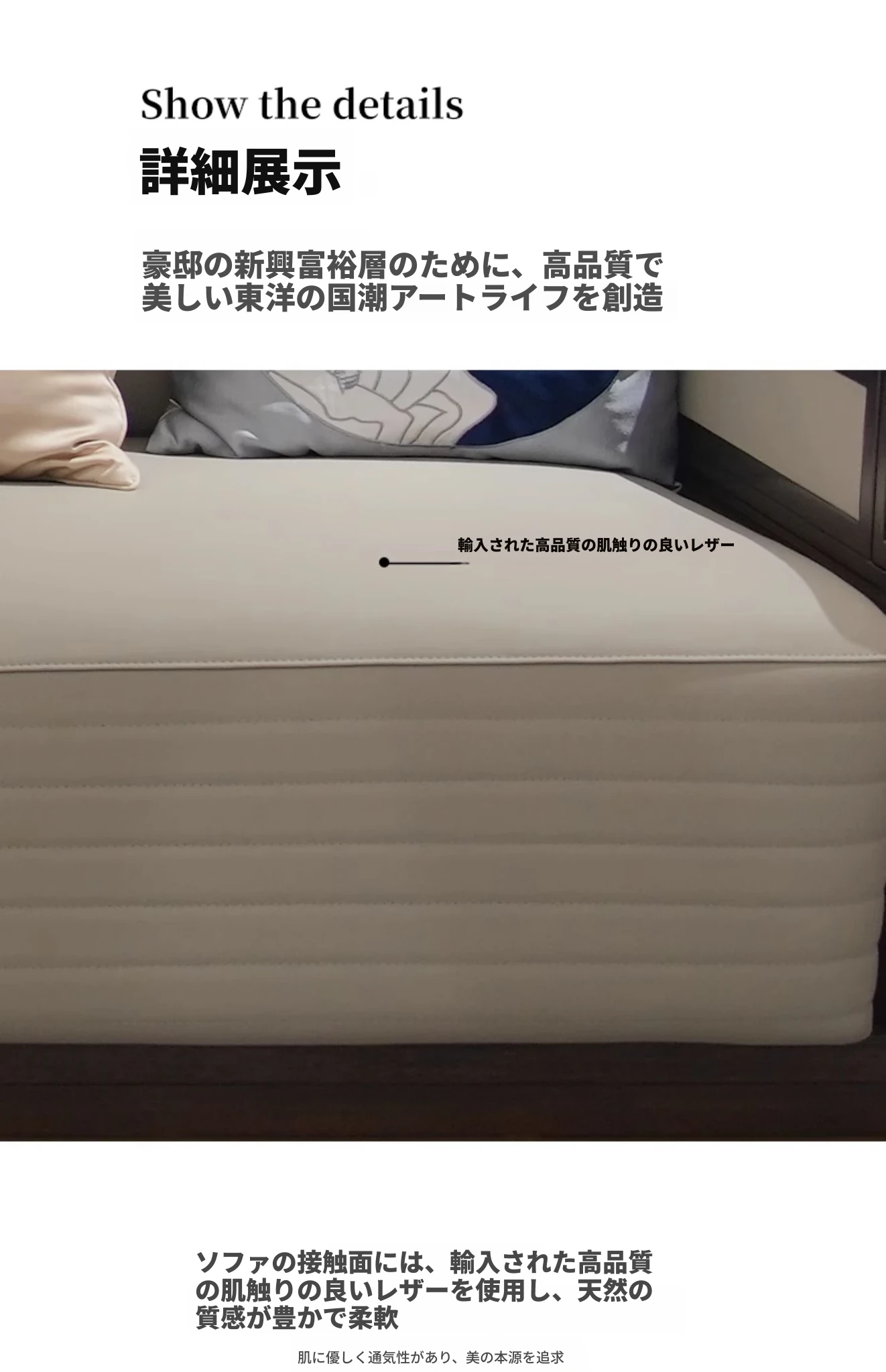 盛世ユナイテッド 国潮新中式ソファ 禅の心を感じる別荘スタイルの収納付き本革ソファ 1+2+3人掛けリビング家具で、あなたの空間に優雅さをプラス!
