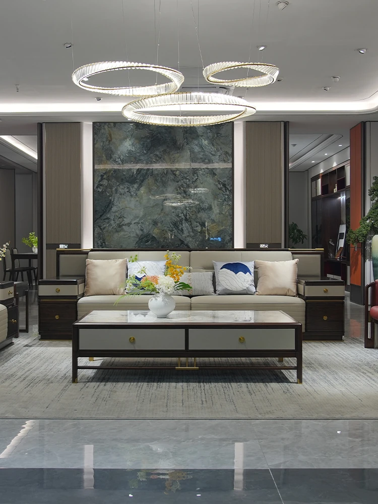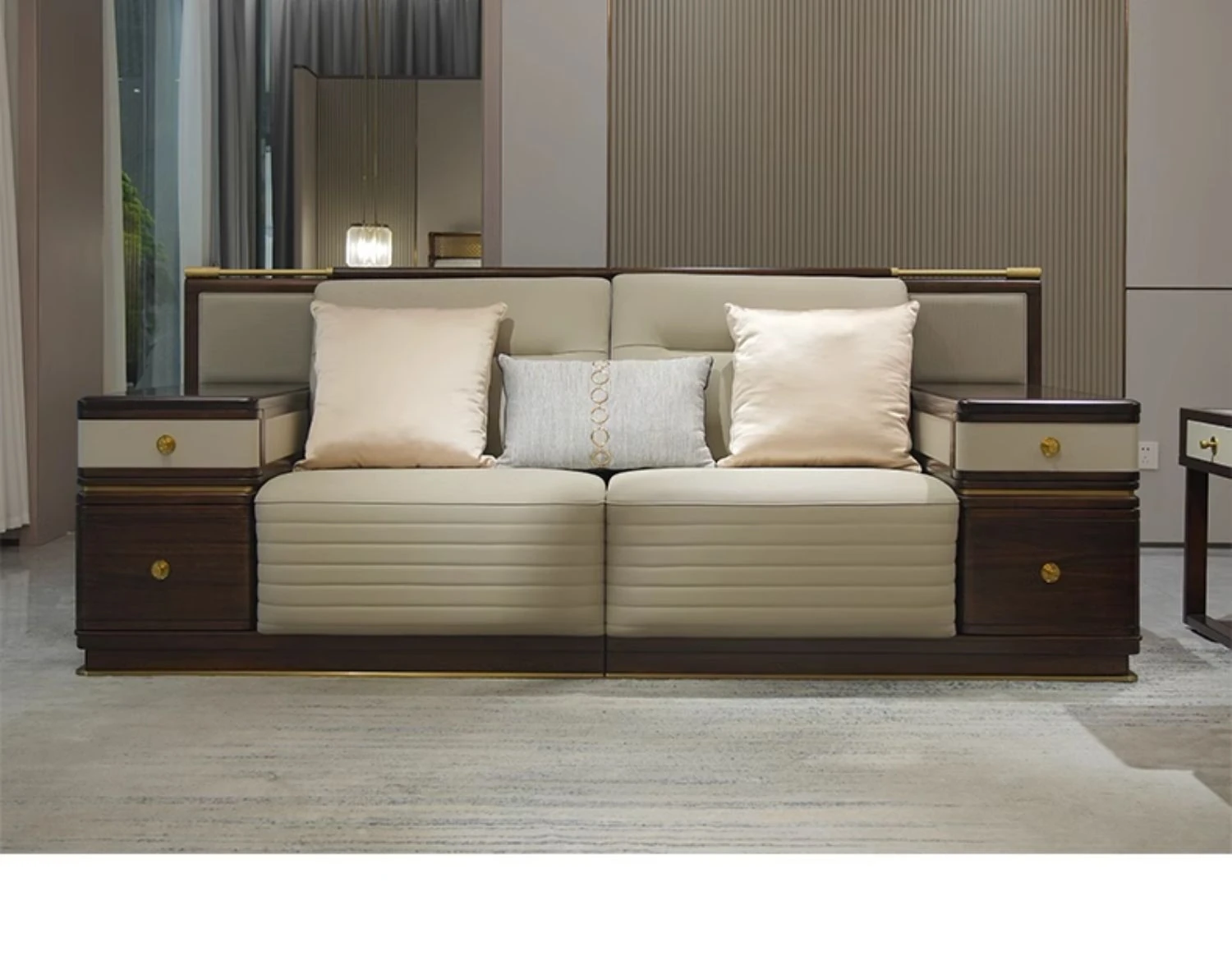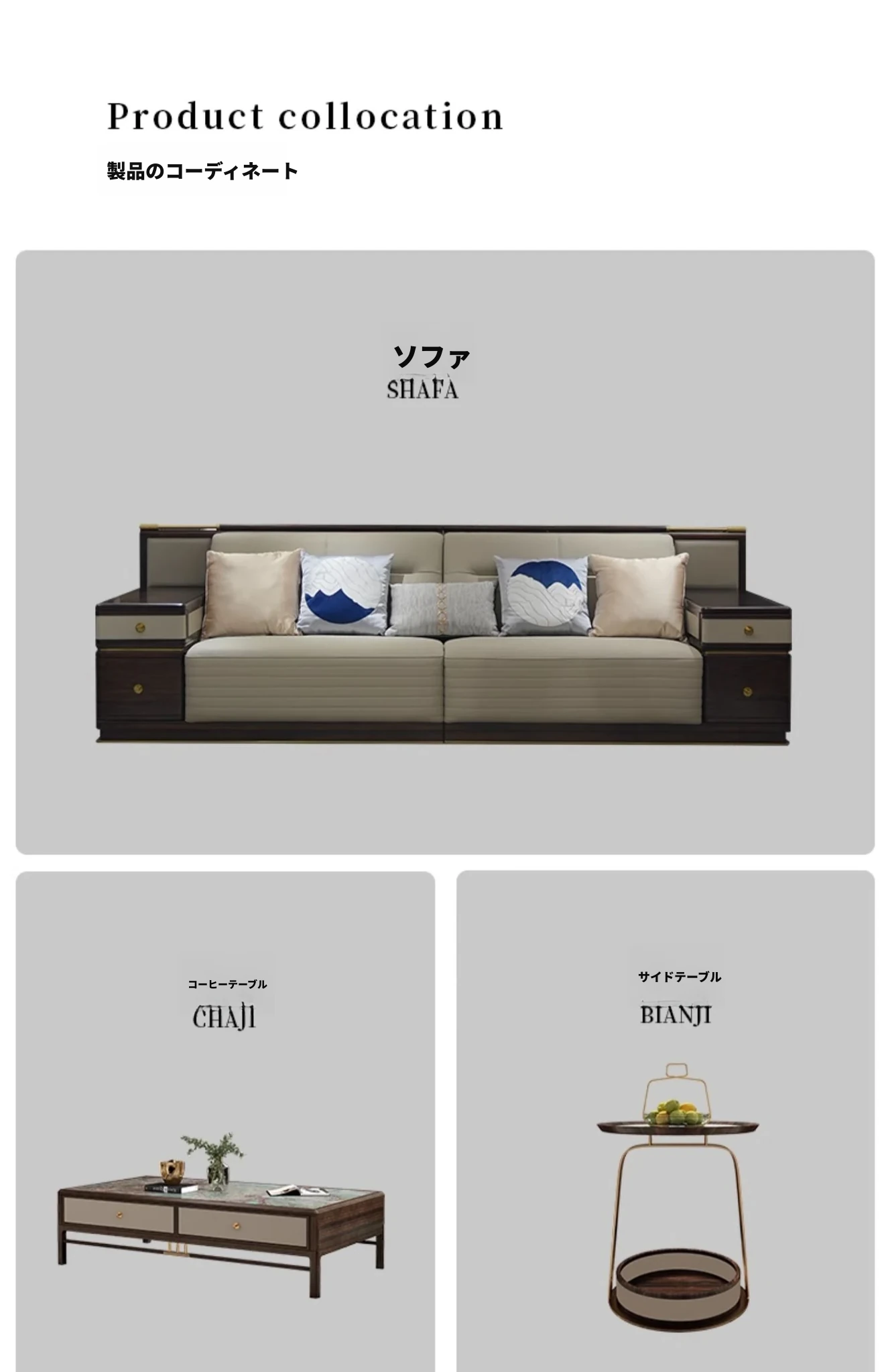 盛世ユナイテッド 国潮新中式ソファ 禅の心を感じる別荘スタイルの収納付き本革ソファ 1+2+3人掛けリビング家具で、あなたの空間に優雅さをプラス!
