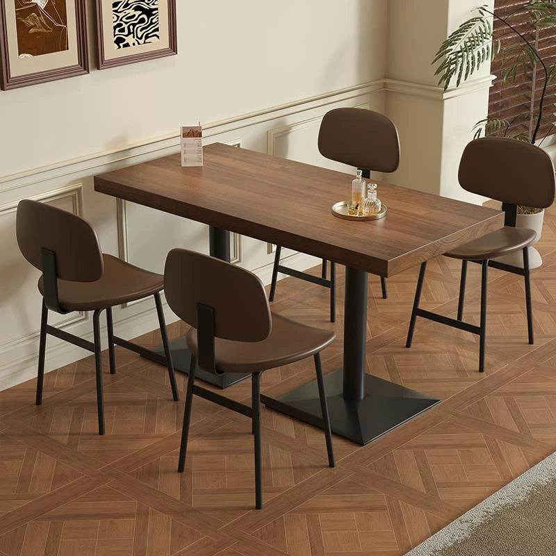天然木材使用!おしゃれなカフェスタイルのテーブルセット。四角形や円形のデザインで、2人用や4人用に最適。ハンバーガーやデザート店にぴったりな実用的でスタイリッシュなダイニングテーブルチェアの組み合わせ。