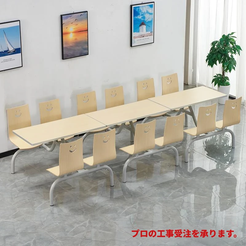 社員食堂や学校に最適!4人・6人用ステンレス製の連結テーブル&チェアセット。耐久性抜群でお手入れ簡単、快適な食事空間を提供します。