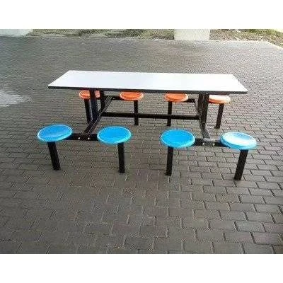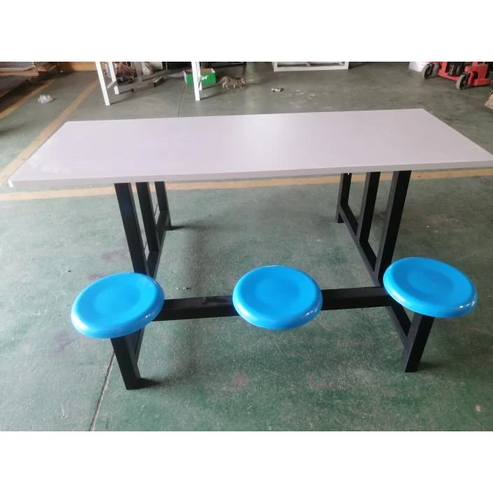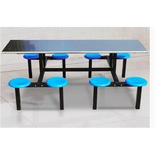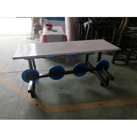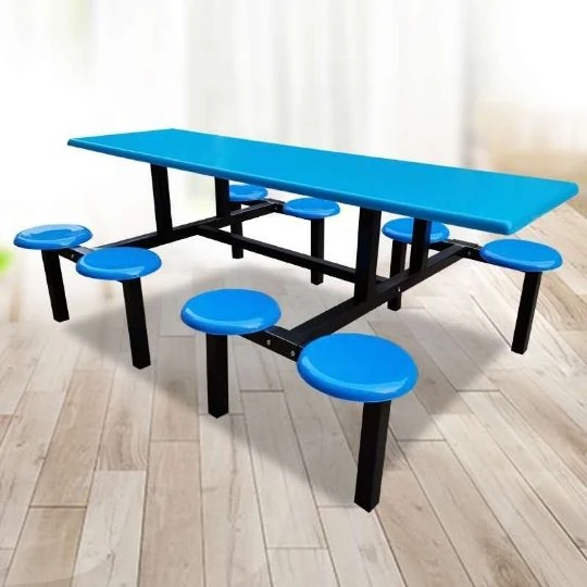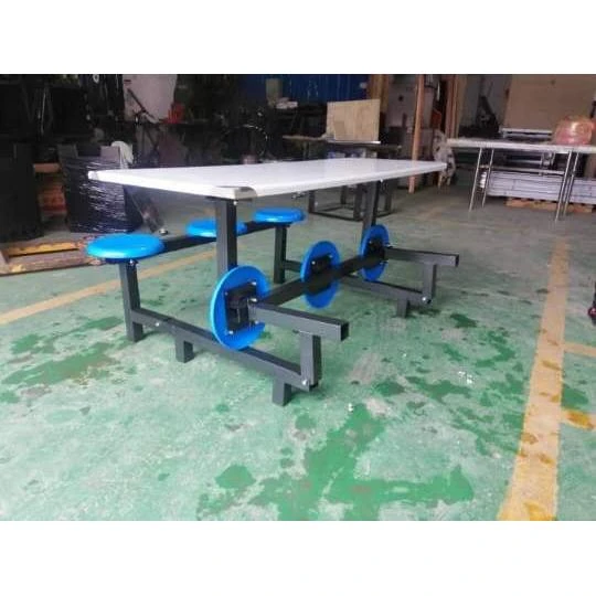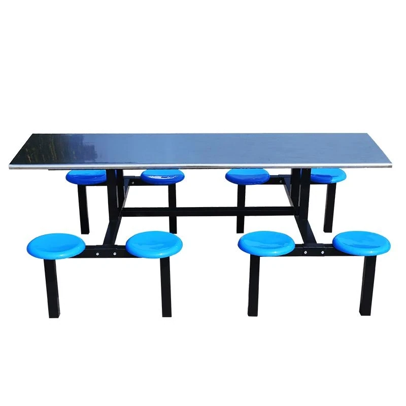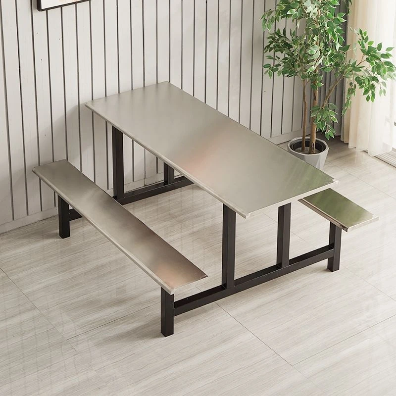 学校や工事現場に最適!4人、6人、8人用ステンレス製食堂テーブルセット - 連結式ファーストフードテーブルとベンチのコンビネーションで、効率的なスペース利用を実現!