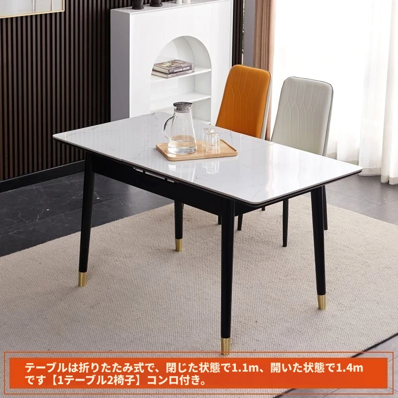 雪山ホワイト【120展開150*80CM】/岩板1卓4椅子 フラッシュチェア 釜なし/玄関配達