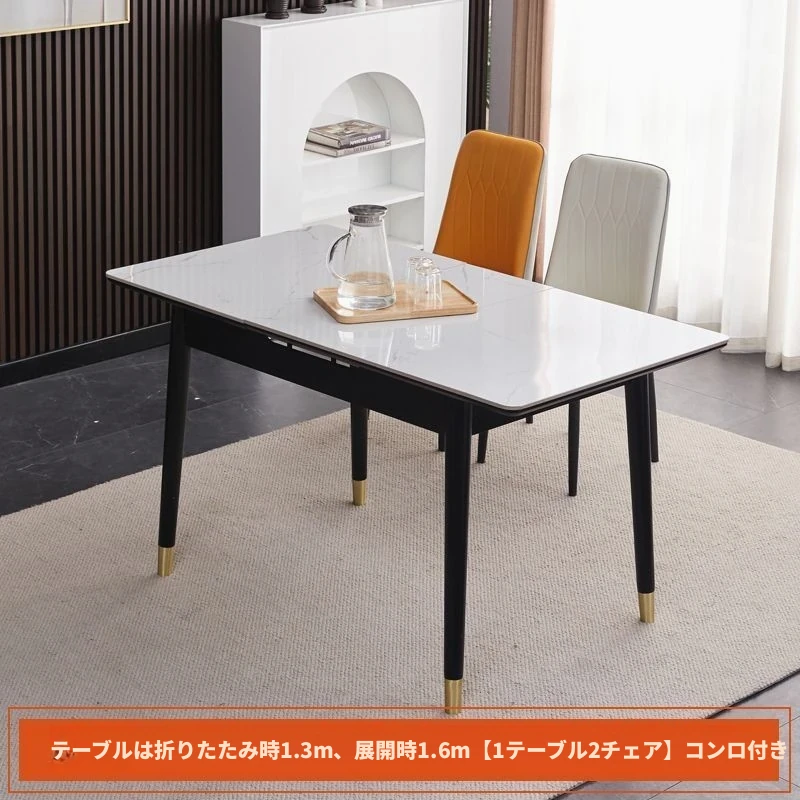 雪山ホワイト【120展開150*80CM】/岩板1卓2椅子 フラッシュチェア 釜なし/玄関配達
