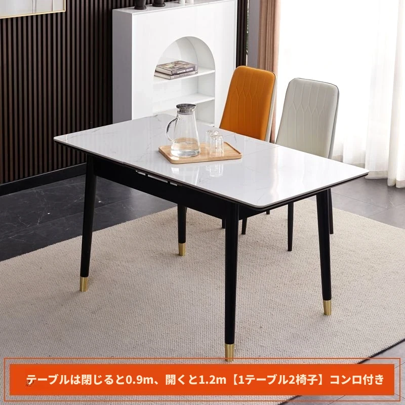 雪山ホワイト【120展開150*80CM】/岩板1卓2椅子 フラッシュチェア 釜あり/玄関配達