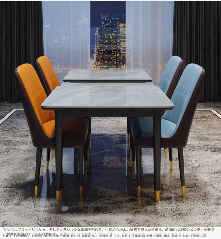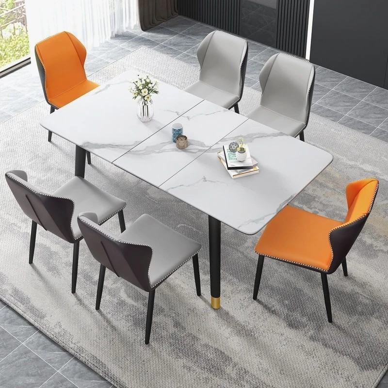 雪山ホワイト【130展開160*80CM】/岩板1卓6椅子 フラッシュチェア 釜なし/玄関配達