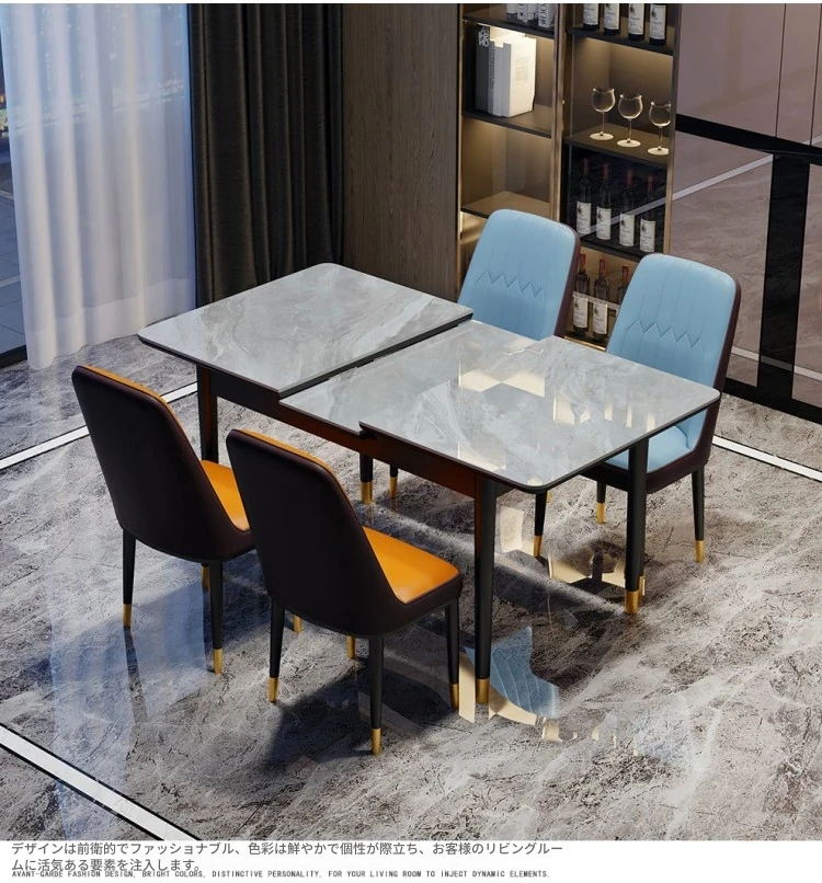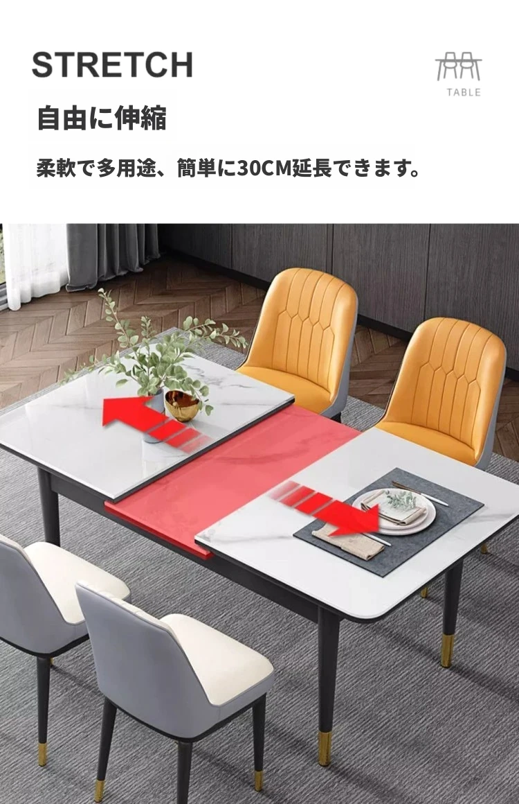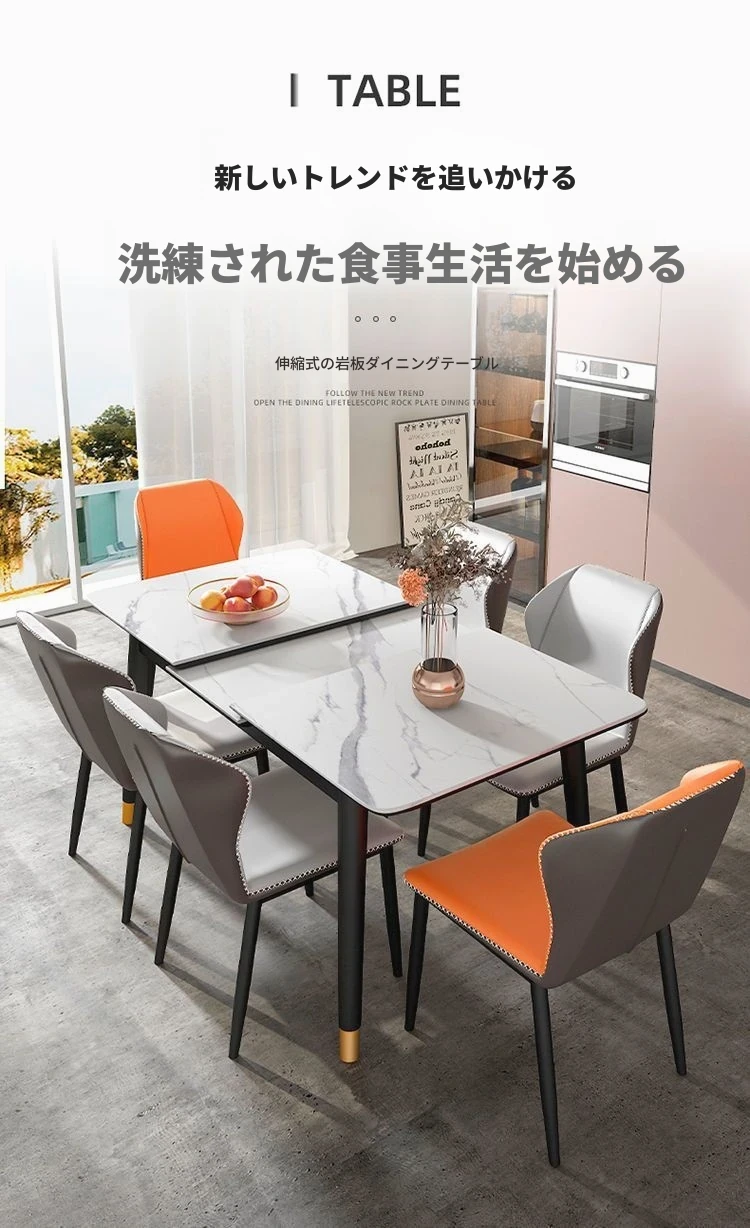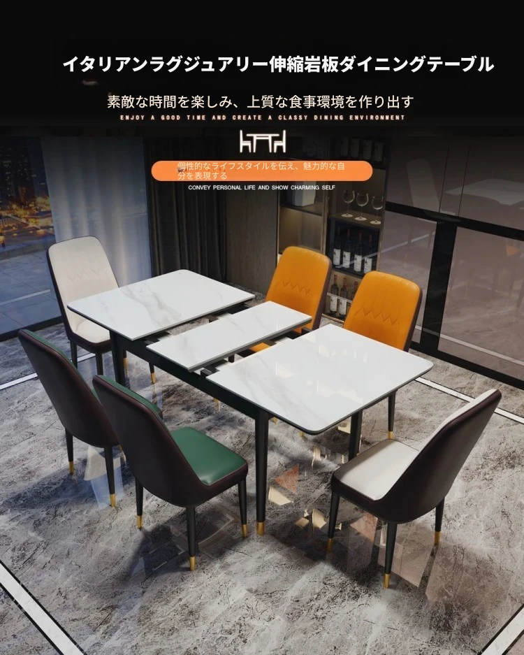 雪山ホワイト【120展開150*80CM】/岩板1卓6椅子 フラッシュチェア 釜なし/玄関配達