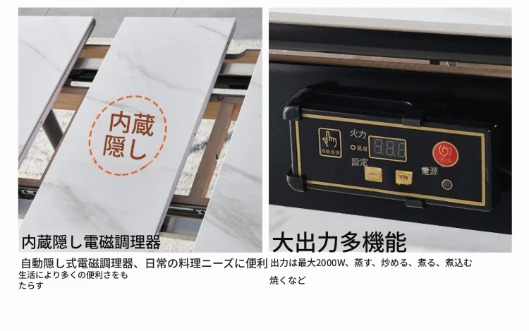 雪山ホワイト【120展開150*80CM】/イーノ岩板:単卓【釜あり】階上配達