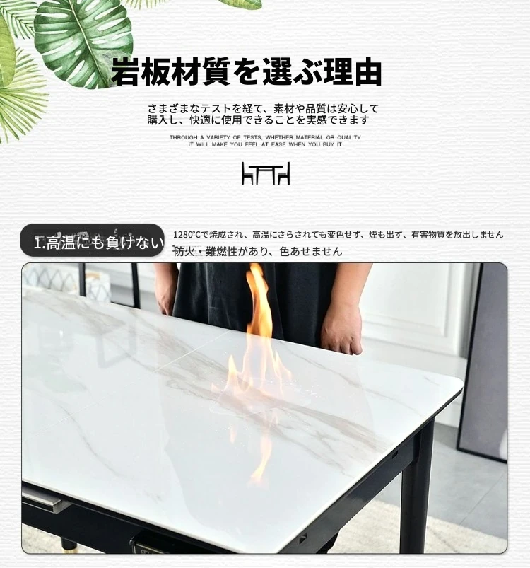 雪山ホワイト【120展開150*80CM】/岩板1卓4椅子 フラッシュチェア 釜あり/玄関配達
