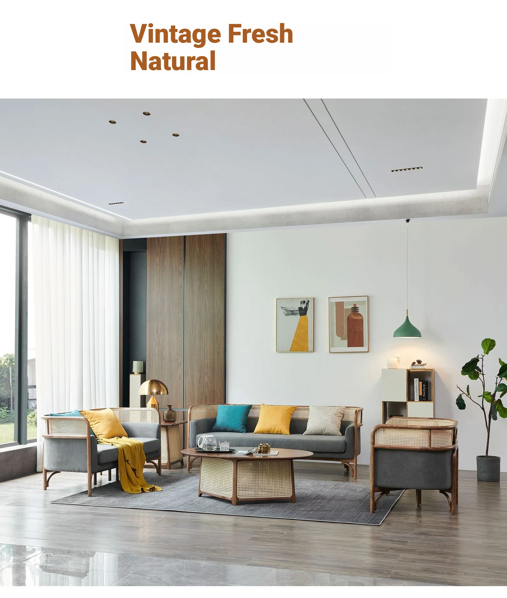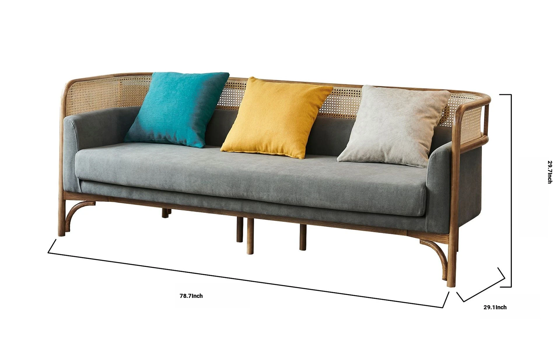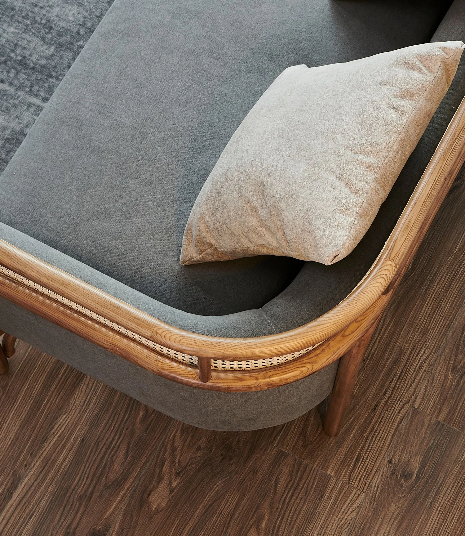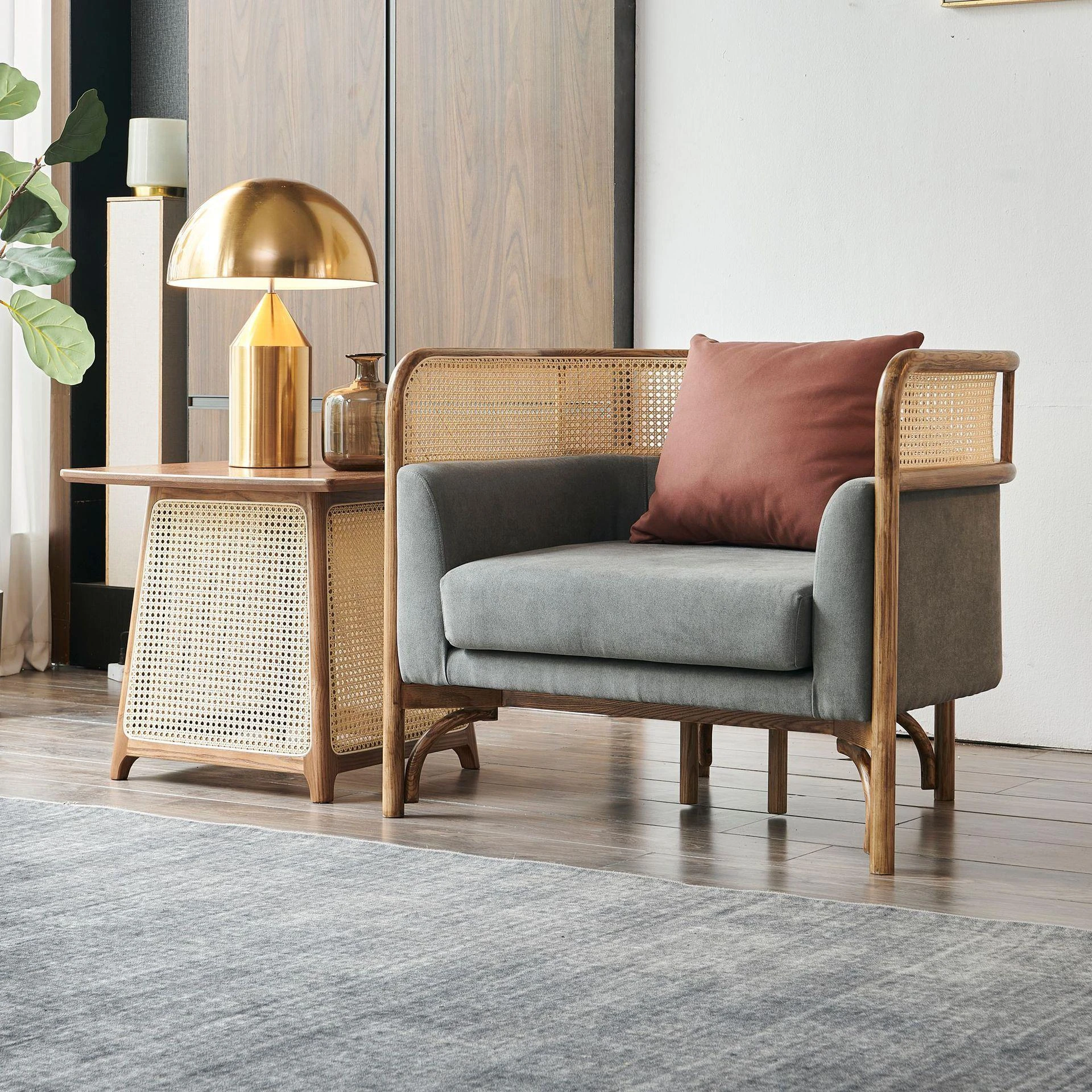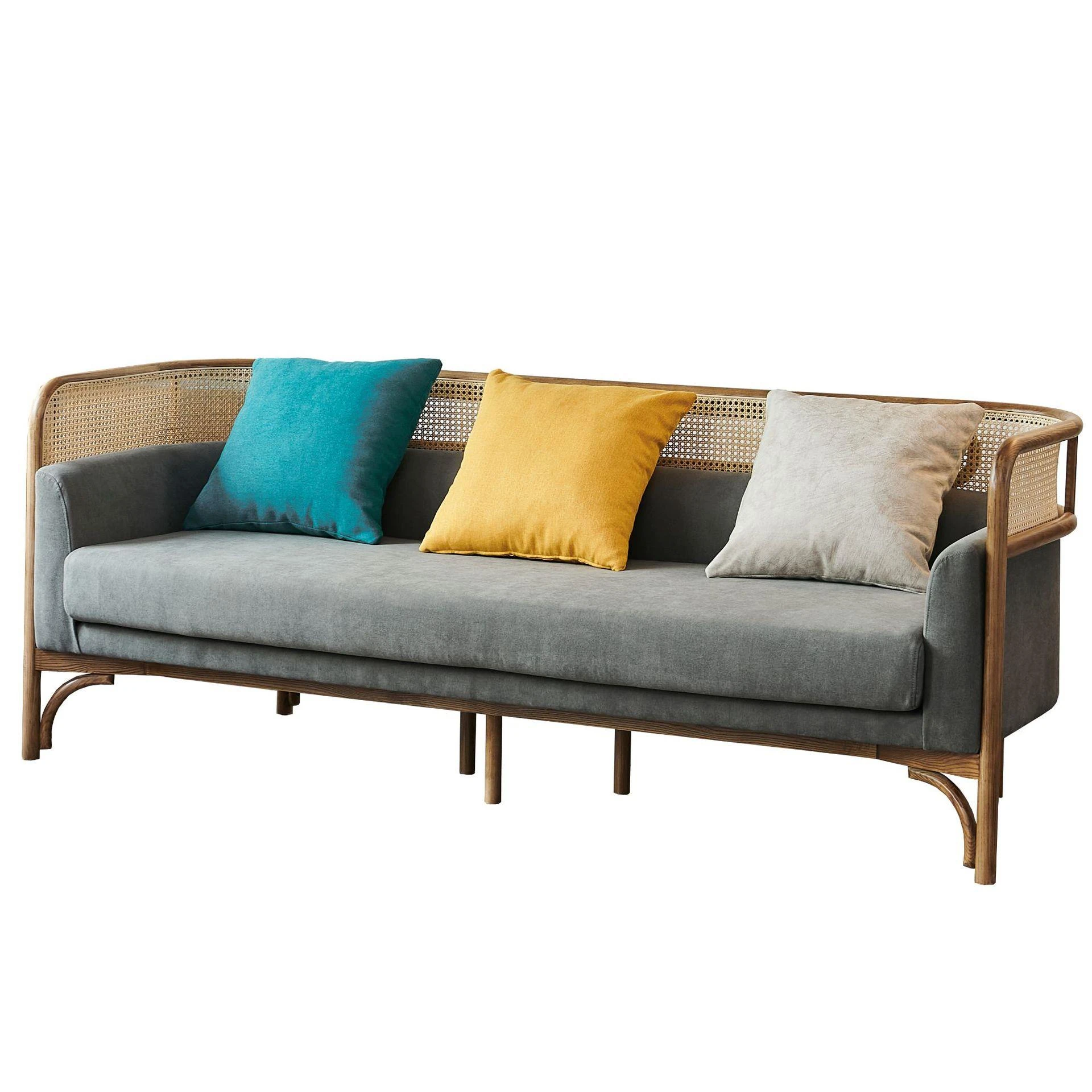 Vintage Rattan Sofa Set - Wabi-Sabi Nordic Style Solid Wood Upholstered Sofa for Hotels and Guesthouses, Featuring Ash Wood Craftsmanship
