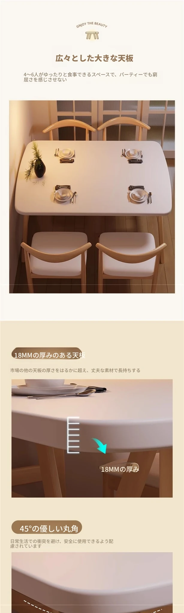 140*80暖白色+6脚ダイニングチェア加粗テーブル脚☆玄関まで配達☆